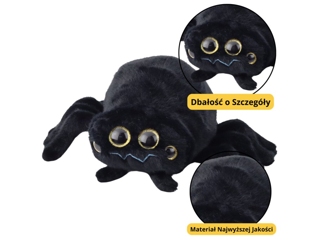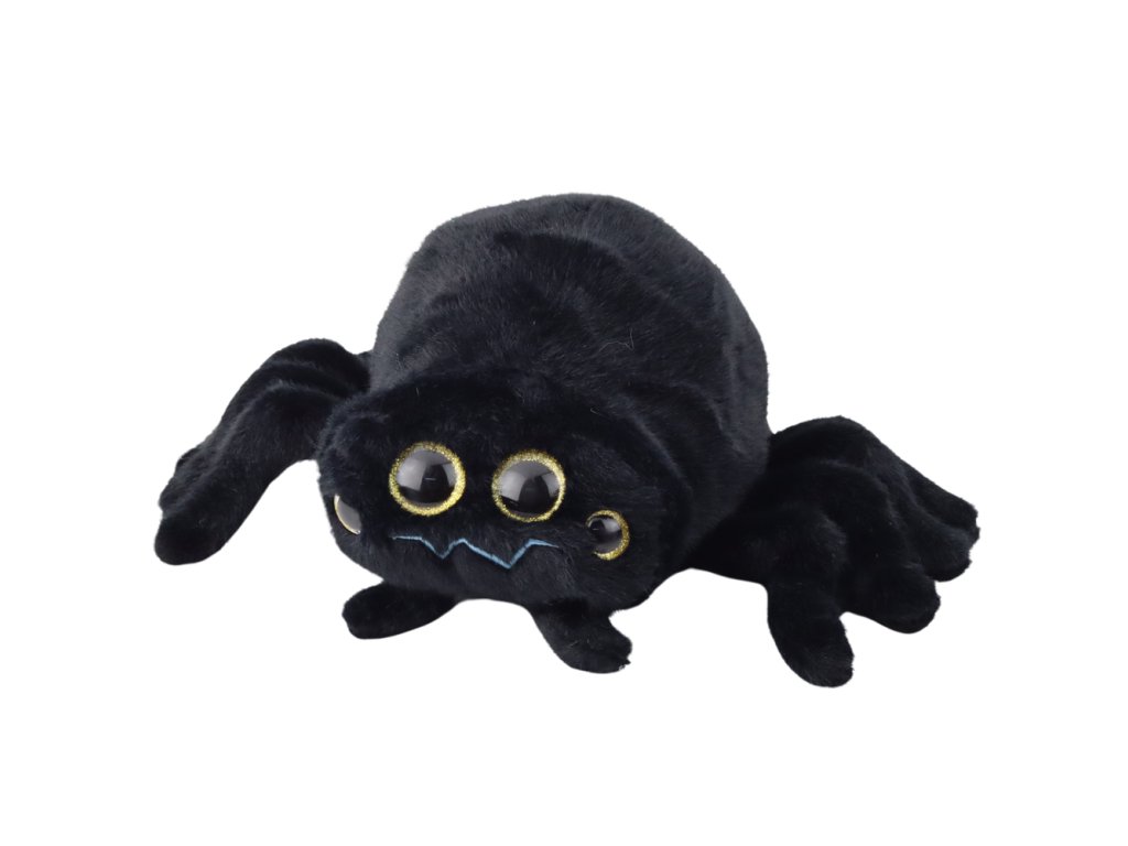- Náš pavouk je vyroben z sametově hebkého plyše a díky hluboké, černé barvě získává tajemný, ale zároveň přátelský vzhled