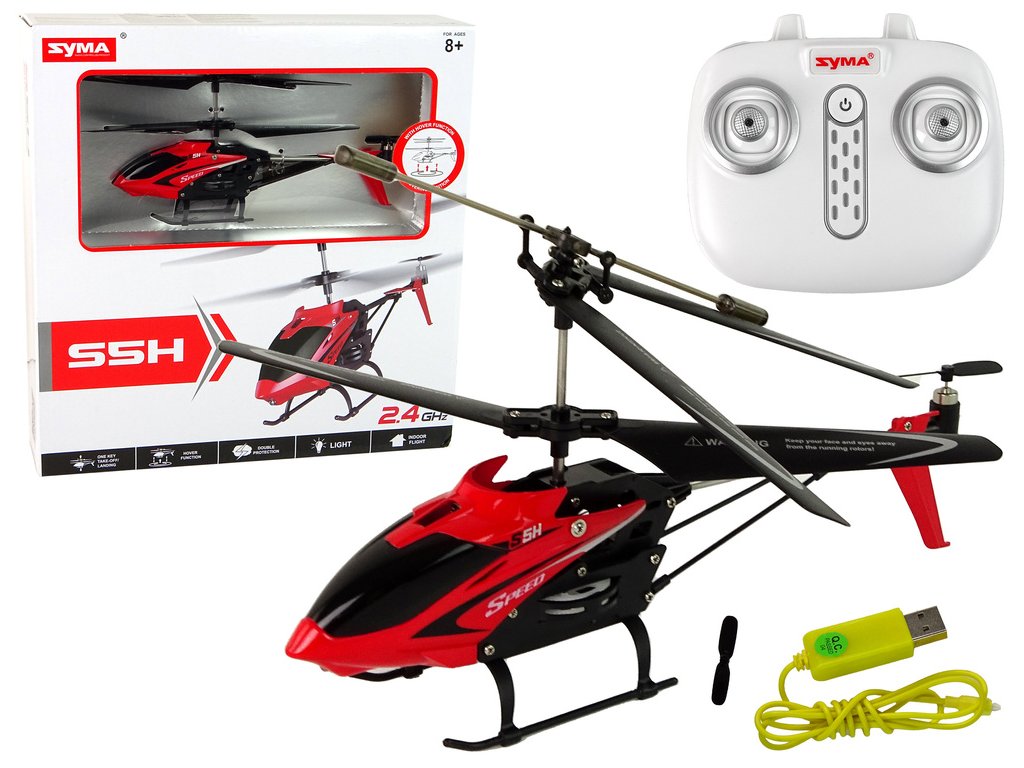 Závodní helikoptéra na dálkové ovládání S5H SYMA 2.4G Červená pro všechny nadšené letecké fanoušky. Tento kompaktní helikoptéra o rozměrech 19 cm x 19 cm (s vrtulemi) x 10 cm nabízí neuvěřitelnou zábavu během letu. Je snadno ovladatelná pomocí bílého ovladače o rozměrech 13 cm x 12 cm x 5 cm (baterie 4 x AA nejsou součástí balení). Helikoptéra může být ovládána až do vzdálenosti 20 metrů od ovladače díky technologii 2.4G.