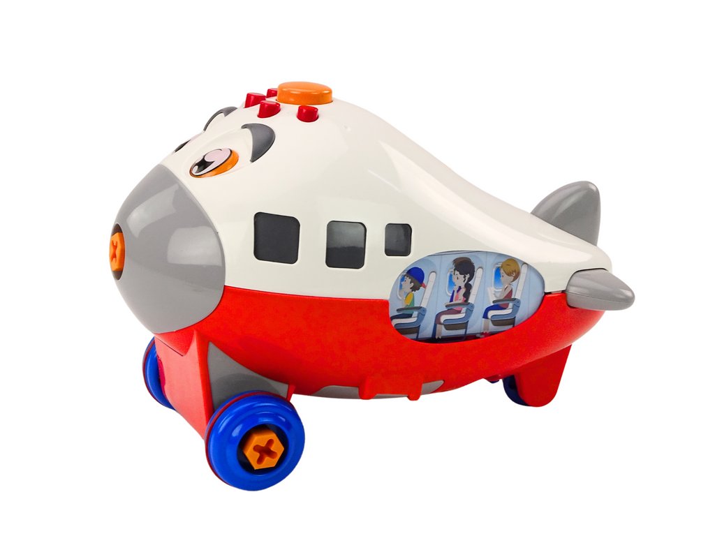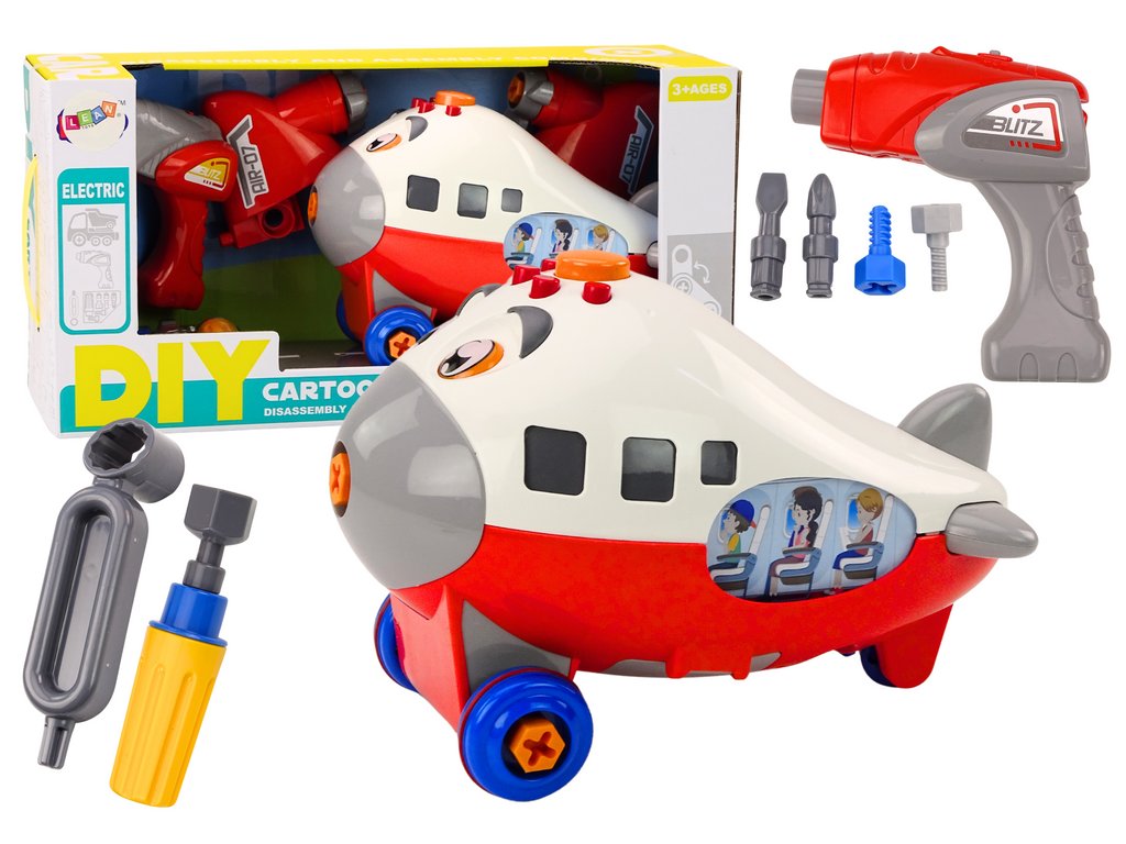 - Červené kreslené letadlo ke šroubování DIY s křídly je unikátní hračka, která dětem odhaluje fascinující svět mechaniky