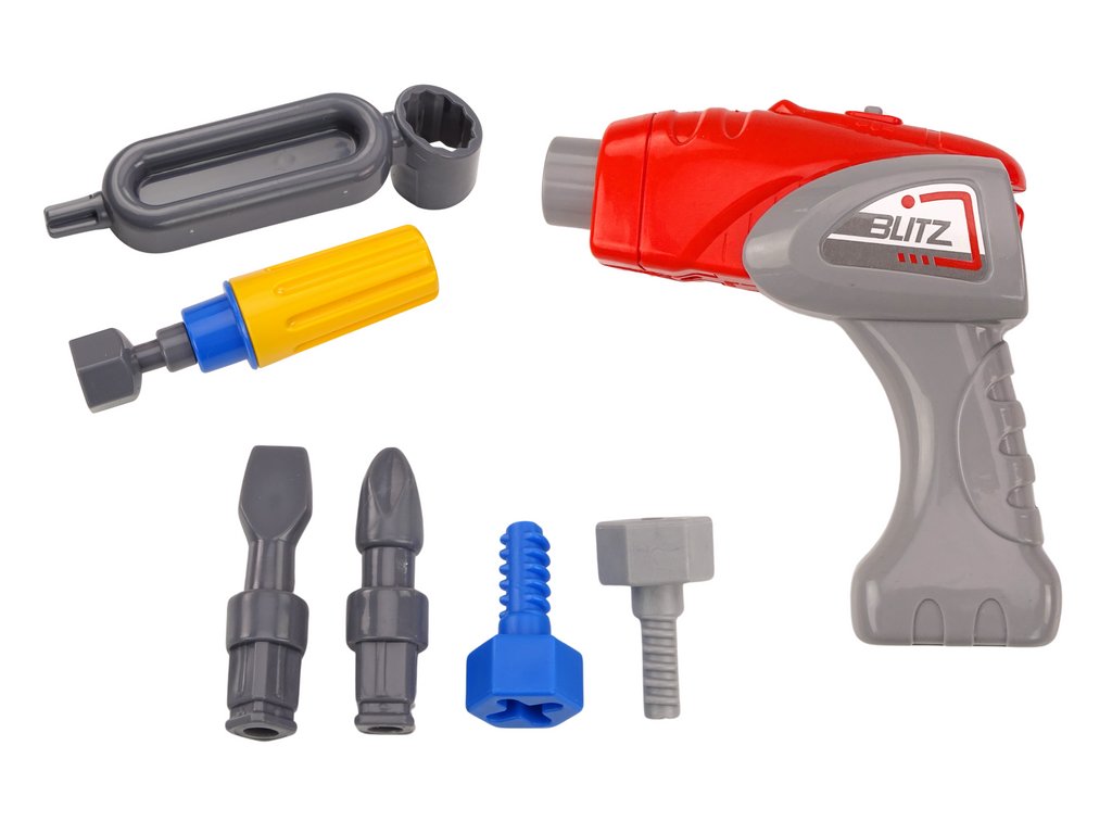- Díky přiložené sadě nástrojů, která zahrnuje vrtačku, šroubovák a tři výměnné koncovky, si děti mohou užít dny plné tvoření a zábavy