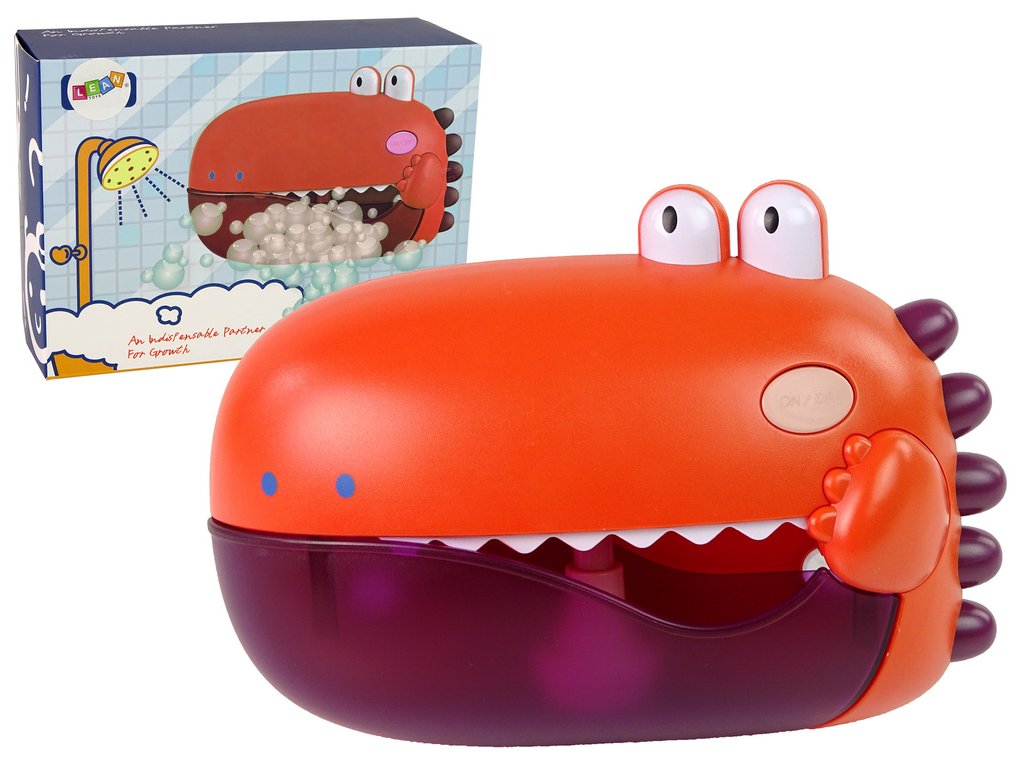 - Koupací hračka Mýdlové bubliny Dinosaurus červený na baterie Ideální hračka do vany, generátor bublin
