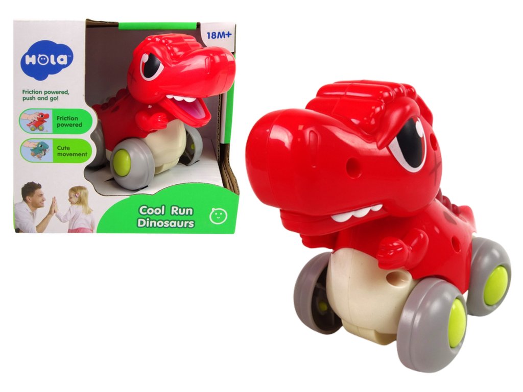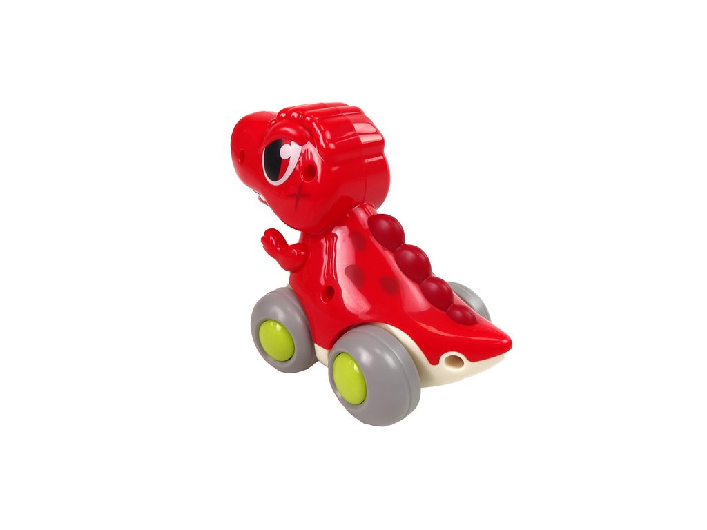 Dinozaur na kolečkách T-Rex červený figurka Hračka dinosaurus se jistě stane skvělým společníkem každého malého dítěte Během hry se dítě učí první tvary a barvy, čímž se rozvíjí v mnoha směrech