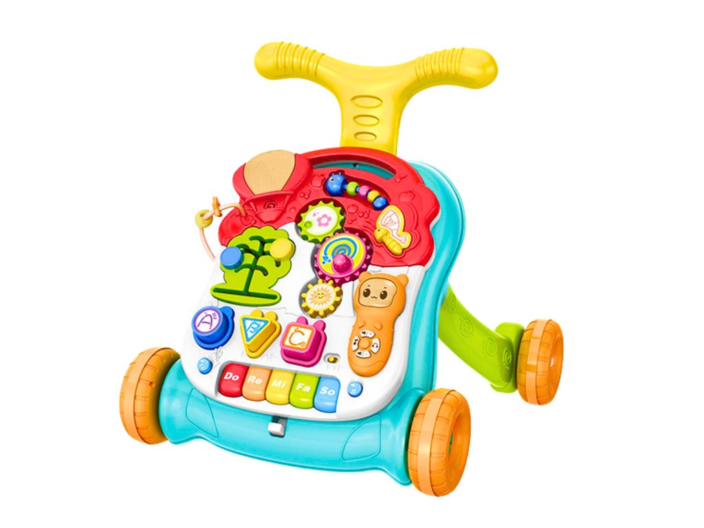 - Chodítko a stolek v jednom, interaktivní a vzdělávací pomůcka pro děti, která podporuje jejich rozvoj na mnoha úrovních, od kognitivních a motorických po hudební a senzorické dovednosti