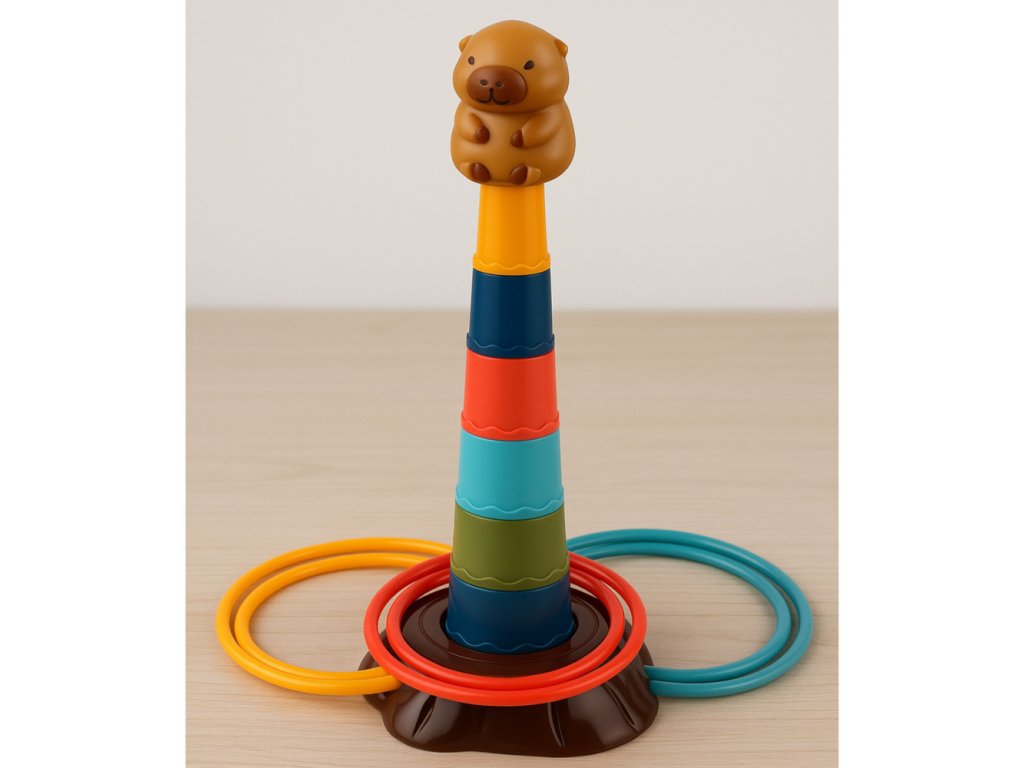 Objevte hravý svět s naší úžasnou zručnostní hrou "Rzut Do Celu Obręcze Kapibara". Tato pestrá a stabilní věž skládající se z pěti úrovní je perfektní volbou pro děti, které milují pohyb, soutěžení a nekonečnou zábavu. Na vrcholu věže sedí roztomilá figura kapibary, která dodává celé hře unikátní charakter.