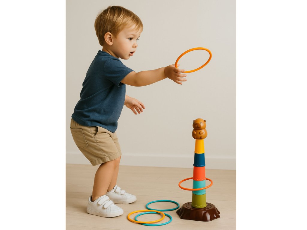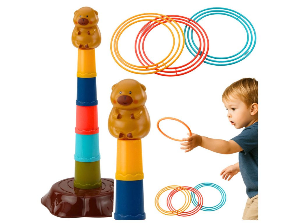 Hra je zaměřena na podporu cílové přesnosti a koordinace, jelikož úkolem je přesně vrhat kruhy na věž. Vyrobeno z lehké a bezpečné plastové hmoty, která je snadno použitelná i pro mladší děti. Tato hra je perfektní pro hru doma i venku, zaručující hodiny aktivní zábavy pro celou rodinu. Vynikající jako dárek, který rozvíjí motorické dovednosti a motivuje k pohybu.