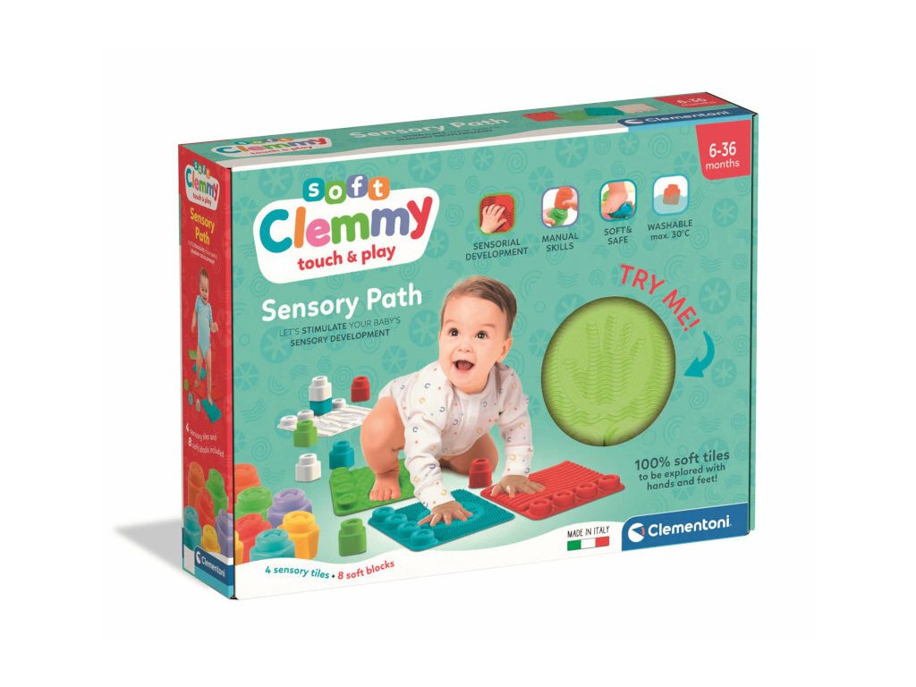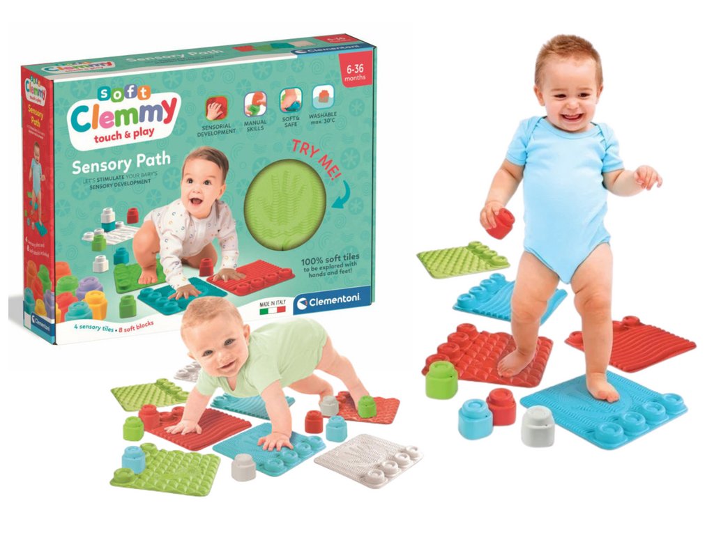 - Clementoni Senzorická Cesta obsahuje tvary pro stavebnice Clemmy, které umožňují dítěti radostné skládání a vytváření věží