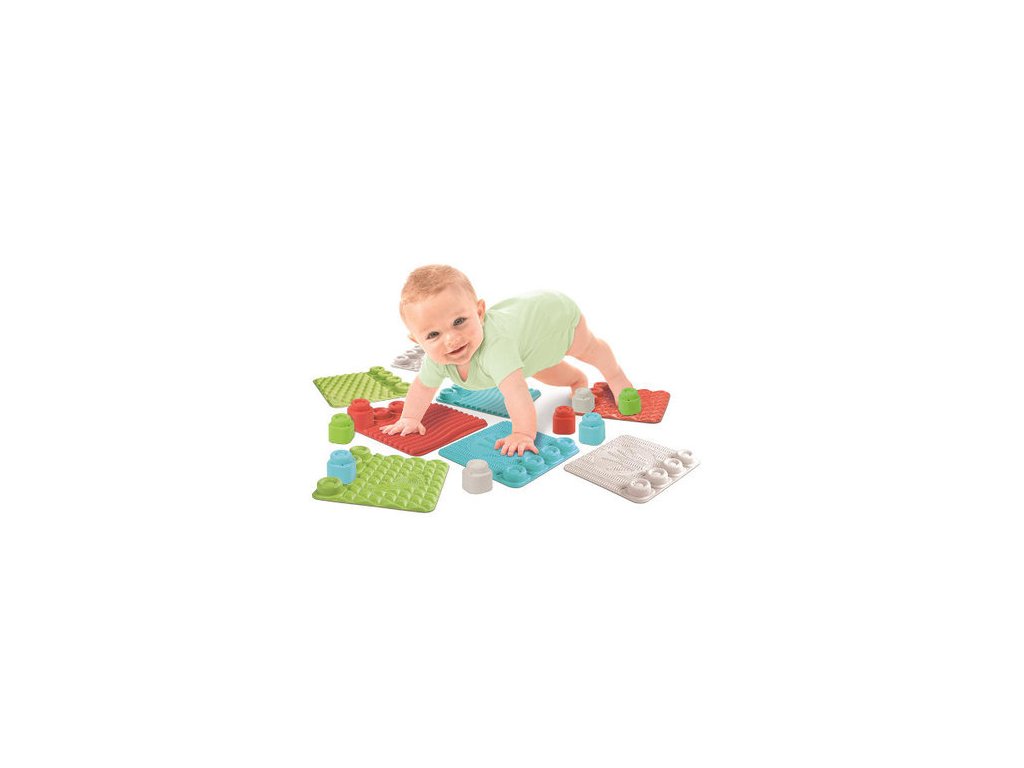 - Dílky mají různé drsné textury, které stimulují dětské dotykové vnímání