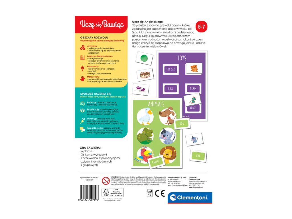 Objevte magický svět jazykového učení s naší vzdělávací hrou Učím se Anglicky: Učím se Hrou Český Jazyk od renomované značky Clementoni. Tato hra je navržena speciálně pro děti ve věku od 5 do 7 let a přináší zábavný způsob, jak se seznámit s anglickými slovíčky běžně užívanými v každodenním životě.