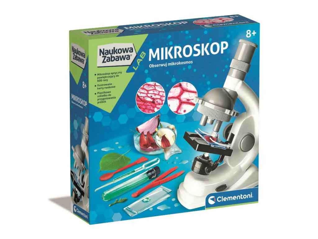 Clementoni Vědecká zábava Experimenty s mikroskopem 50806 je skutečně profesionální a snadno ovladatelný mikroskop určený pro zkoumání mikrosvěta s až 600násobným zvětšením