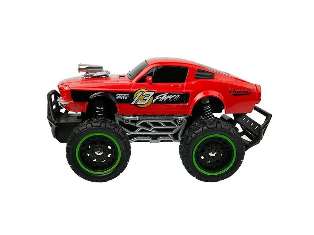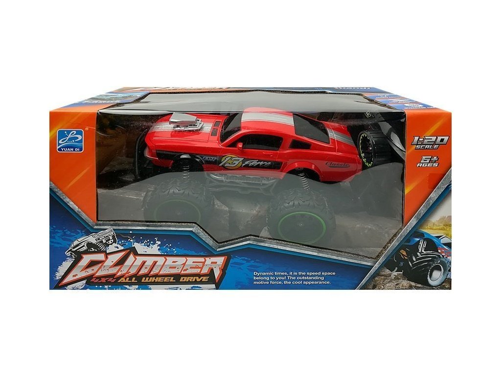 - Dálkově ovládané auto R/C s vysokými koly, červené Terénní auto, které překoná každou překážku