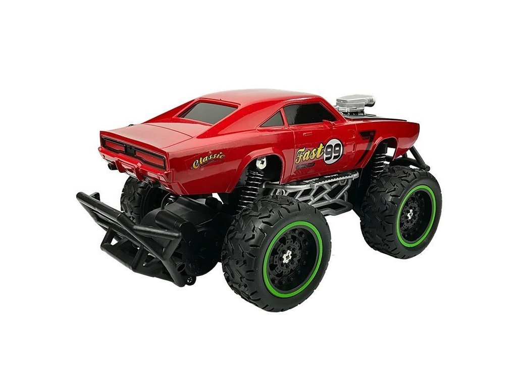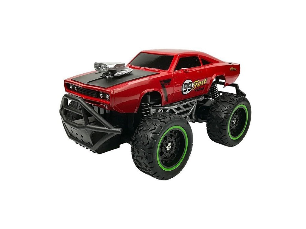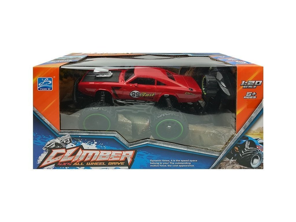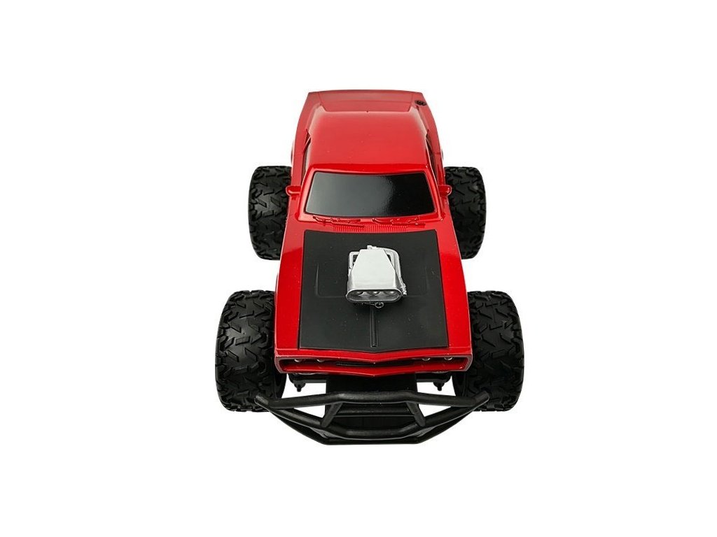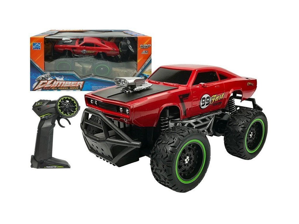 - Dálkově ovládané auto R/C s vysokými koly, červené Terénní auto, které překoná každou překážku