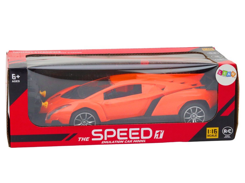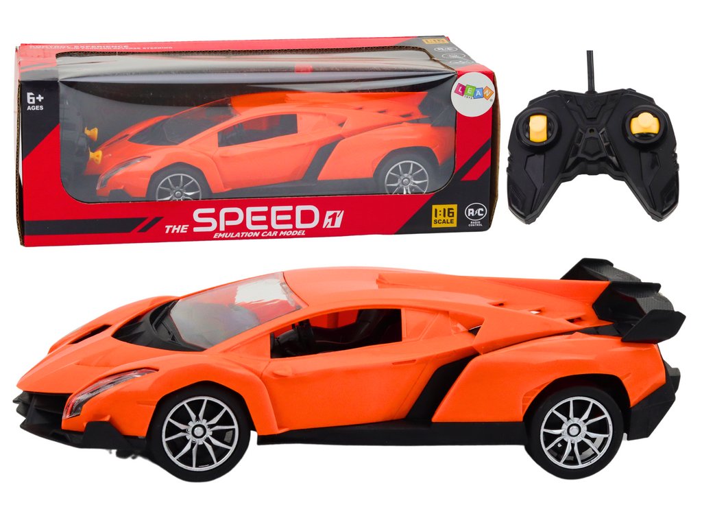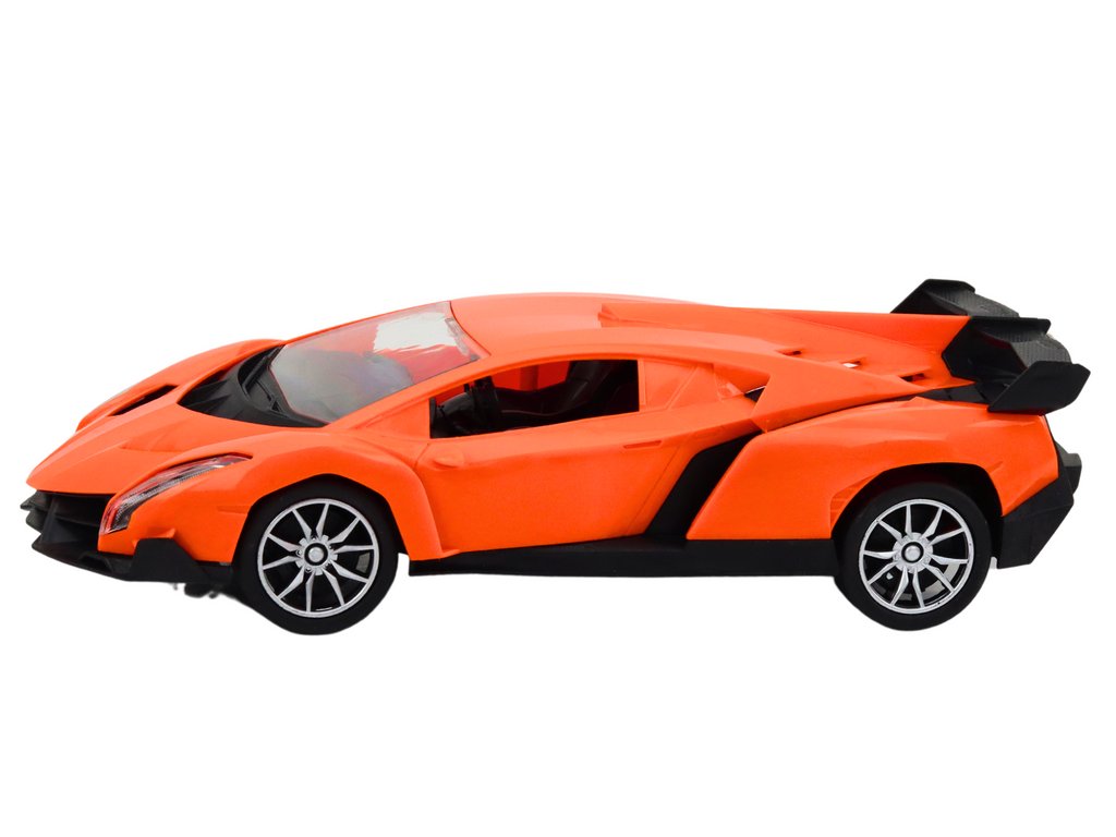 Dálkově ovládané sportovní auto v oranžové barvě je zdrojem dynamické zábavy pro milovníky motorismu Díky impozantnímu designu a pevné konstrukci se každá jízda stává vzrušujícím zážitkem