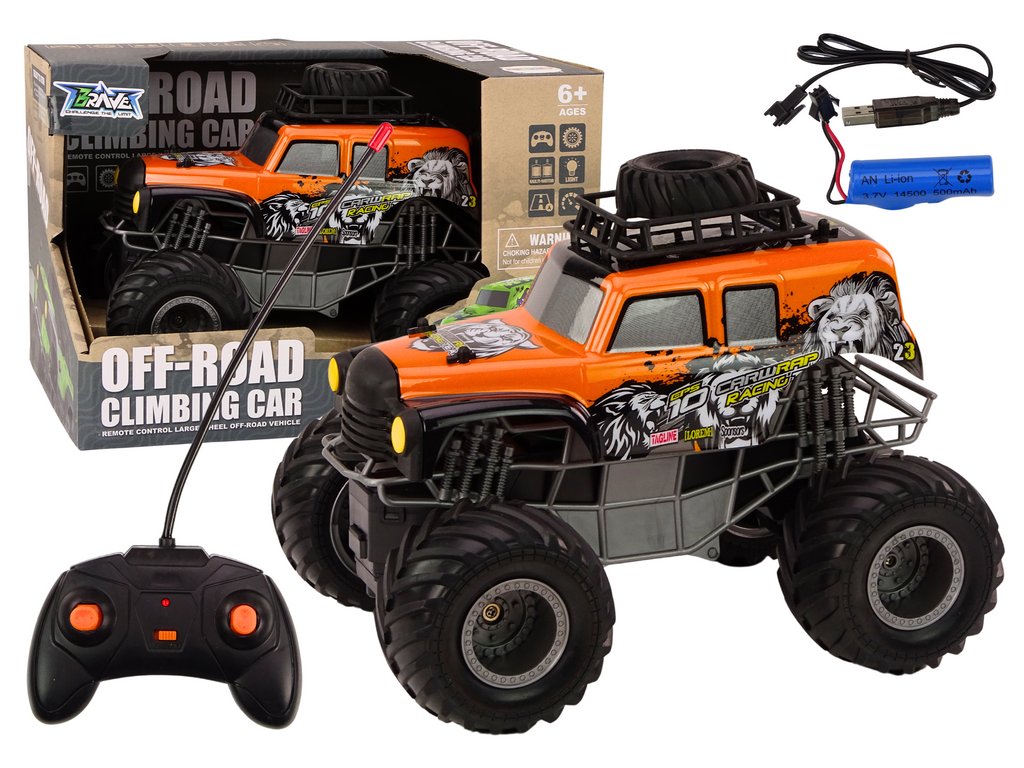Dálkově ovládané terénní autíčko RC 1:16 oranžové Terénní autíčko v měřítku 1:16 je skutečnou lahůdkou pro milovníky dobrodružství a motorismu Výrazné oranžové auto přitahuje pozornost a podtrhuje dynamiku a energii tohoto modelu