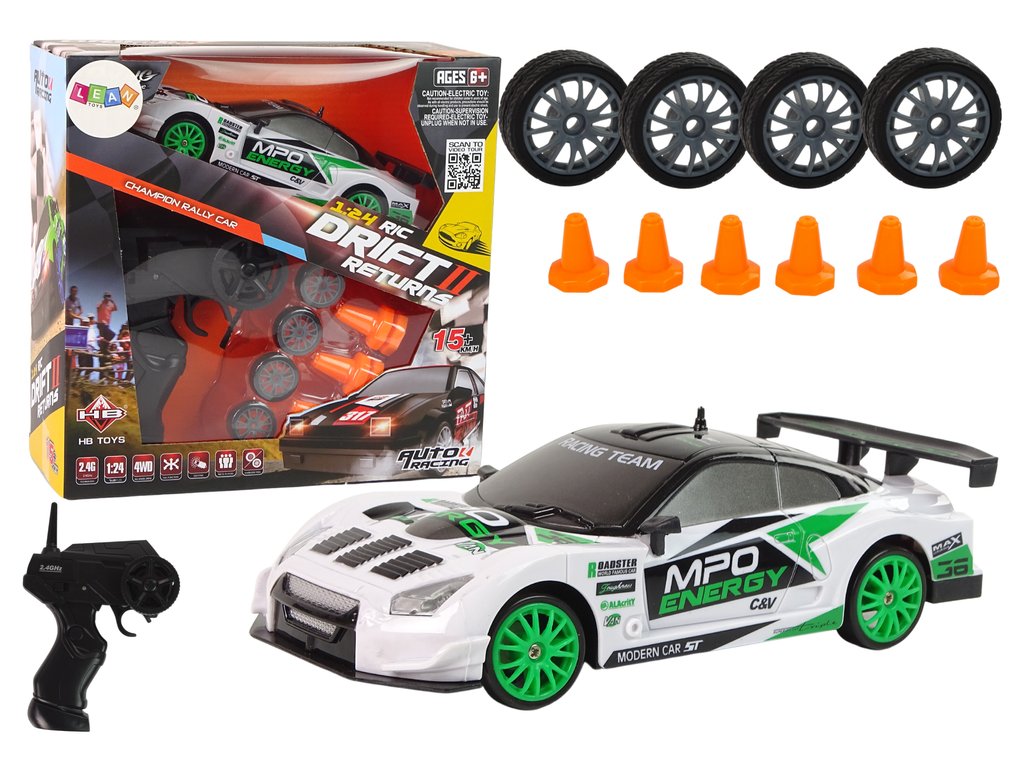 Sada Auto Rajdowe DRIFT + dálkové ovládání a příslušenství Rychlost až 15 km/h!! Super závodní auto, dálkově ovládané pomocí ovladače, s kompletní sadou náhradních kol, potěší každého fanouška automobilových závodů
