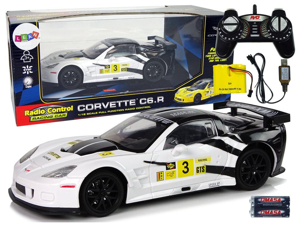 Dálkově ovládaný sportovní závodní auto R/C 1:18 Corvette C6.R Bílý 2.4 G Světla