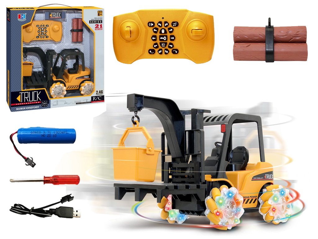 - Dálkově ovládaný vysokozdvižný vozík, otočný o 360 stupňů, svítící kola Řízení dálkově ovládaných vozidel je skvělá zábava pro děti i dospělé