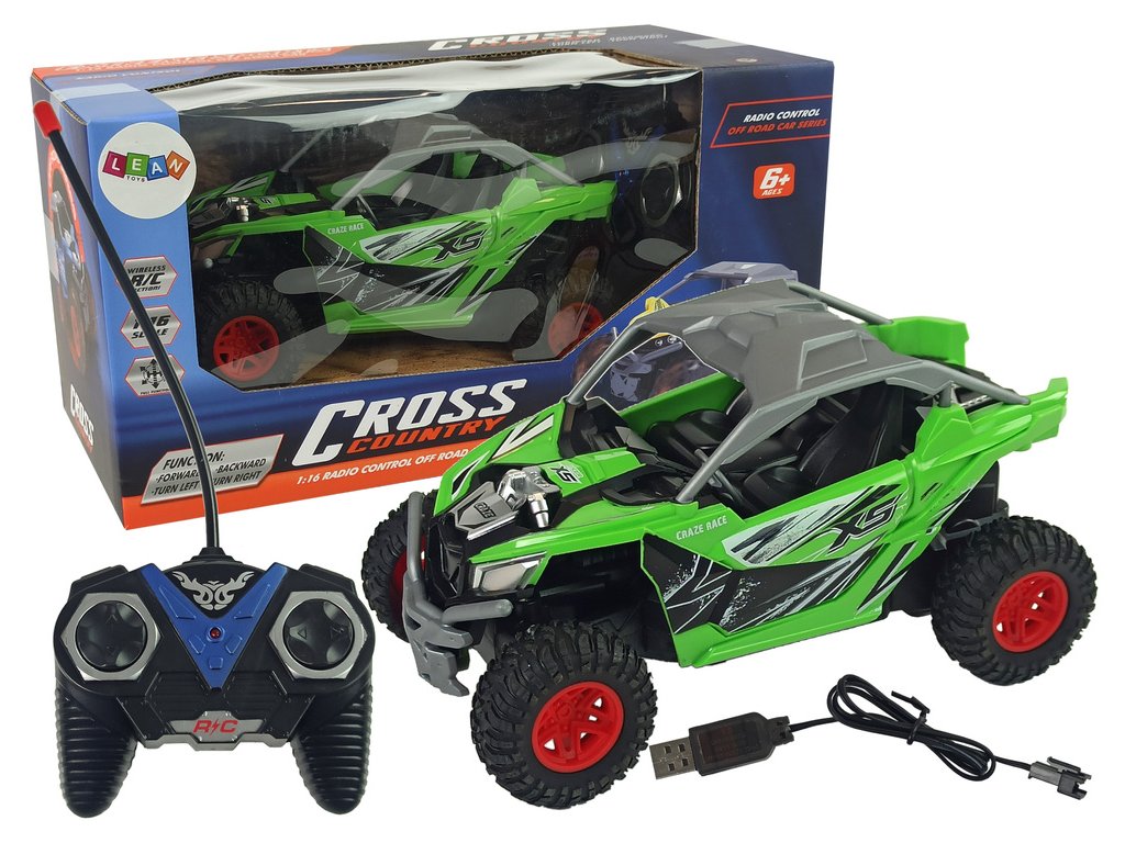 - Objevte ultimátní adrenalinovou zábavu s naším dálkově řízeným terénním autem Cross Country v zelené barvě a frekvenci 27 MHz