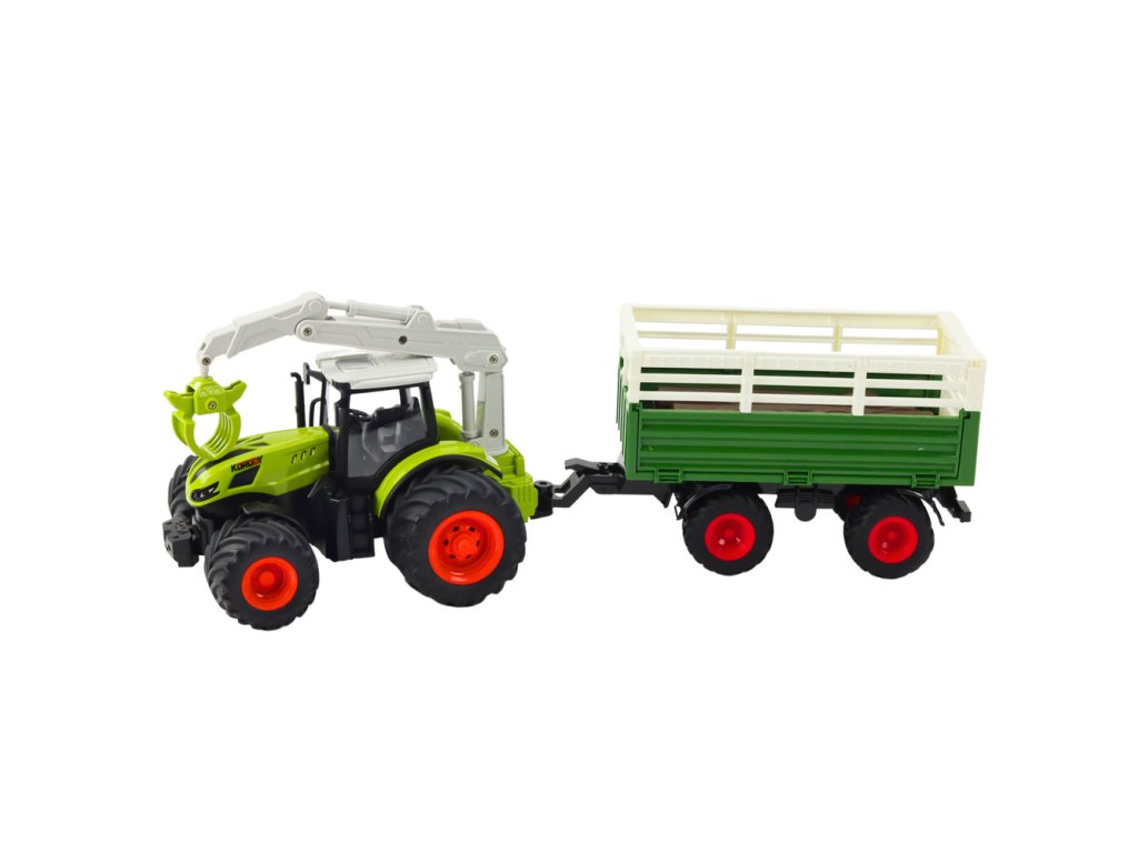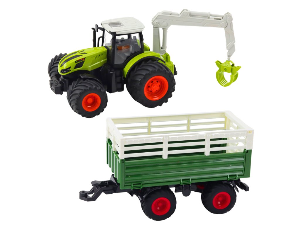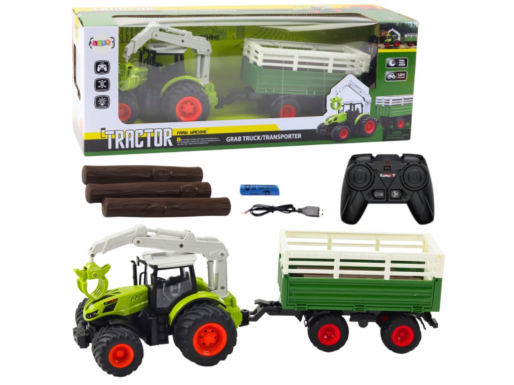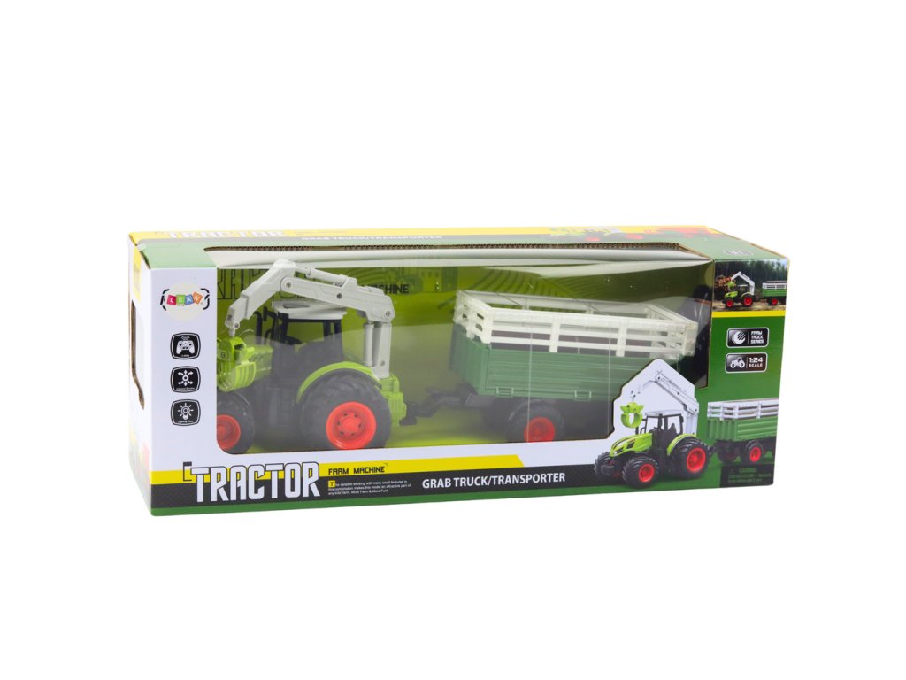 Dálkově Řízený Traktor s Přívěsem a Chytem je ideální hračkou pro děti, které fascinují stroje zemědělství a lesnictví.