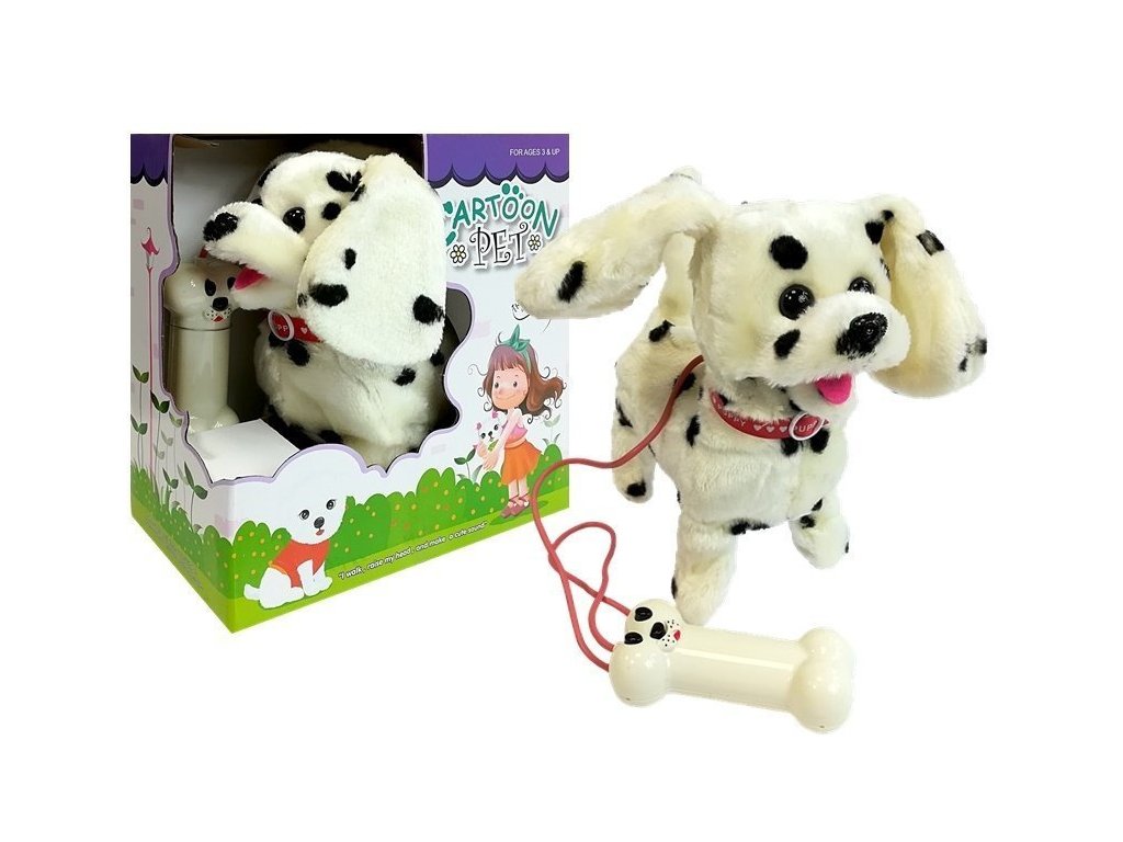 - Dalmatský pes na vodítku s dálkovým ovládáním a kostí Pokud vaše dítě vždy snilo o vlastním zvířátku