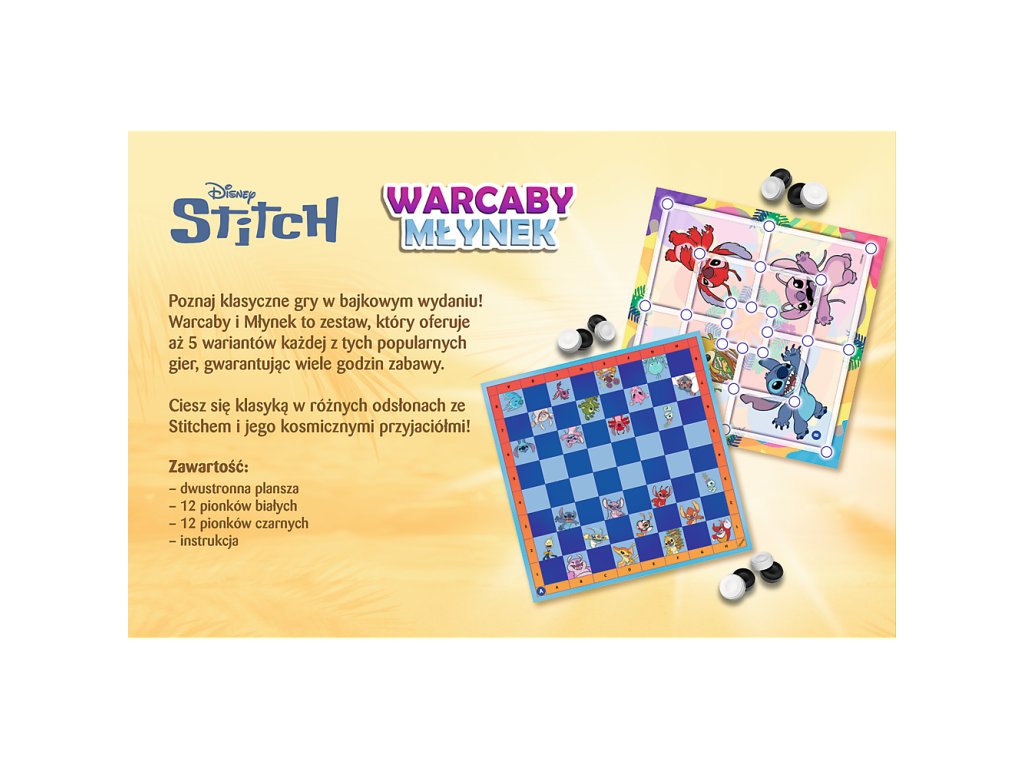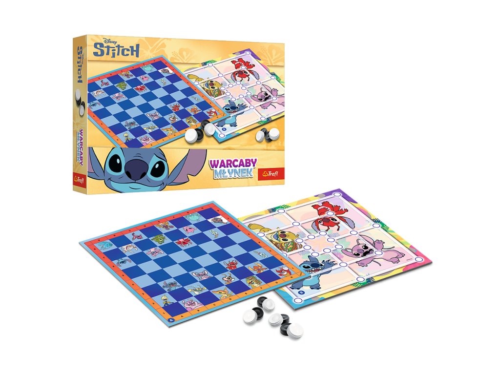 - Hra Dáma a Mlýnek Lilo a Stitch Trefl 02799 představuje tradiční zábavu s oblíbenými postavami z pohádky Lilo & Stitch