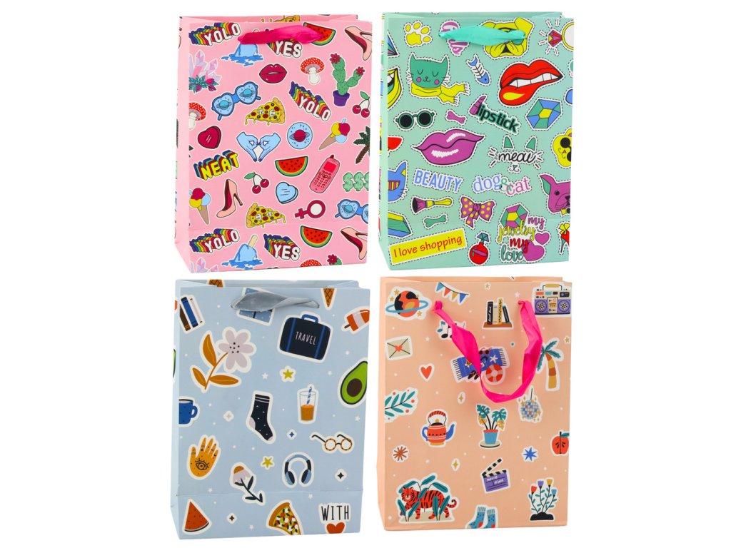 - Dárková taška s barevnými samolepkami, která okouzlí živými barvami a moderním stylem!