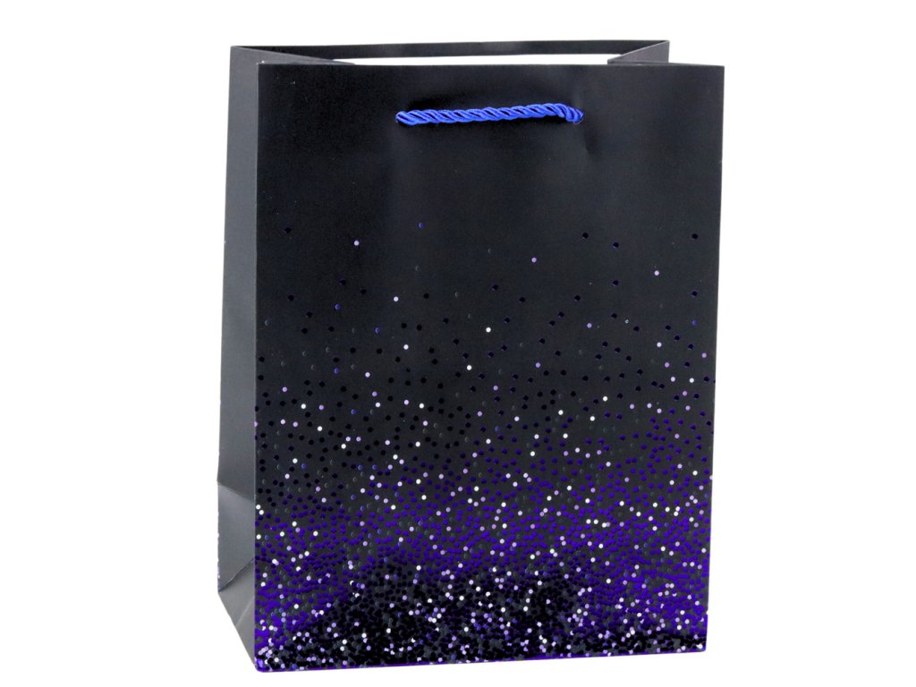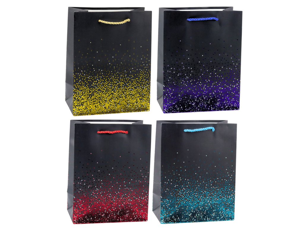 Lesklá dárková taška s gradientovým efektem je vynikající volbou pro výjimečné příležitosti, jako jsou narozeniny, jubilejní oslavy, večírky a další slavnostní události Tato elegantní a stylová taška upoutá pozornost působivým přechodem barev spojeným s třpytivými puntíky, které jí dodávají luxusní charakter