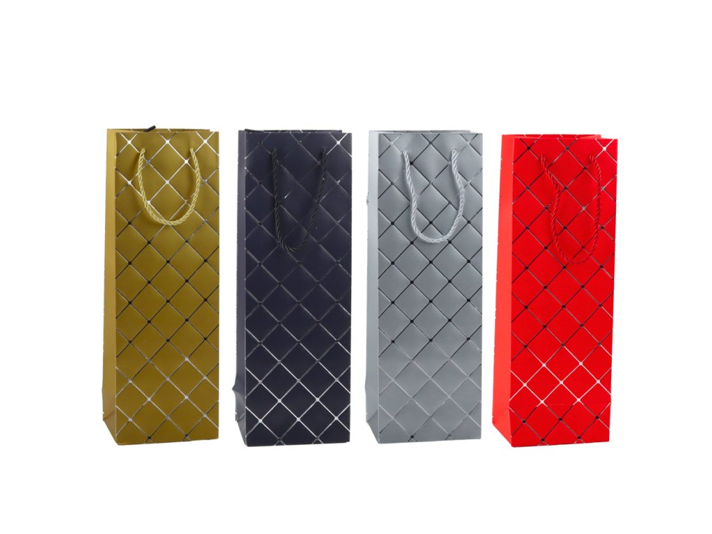 Dárková taška na lahev je ideální volbou pro každou příležitost Vyrobena z vysoce kvalitního papíru se vyznačuje moderním a stylovým designem v podobě stříbrné mřížky, která jí dodává jedinečnou eleganci