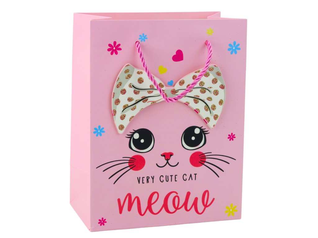 Dárková Taška Papírová Kočičky Třpytivá Růžová 23 x 18 x 10,5 cm