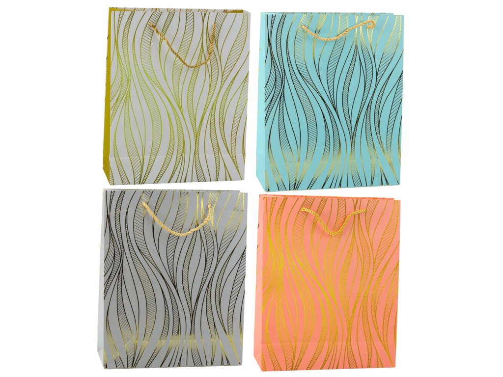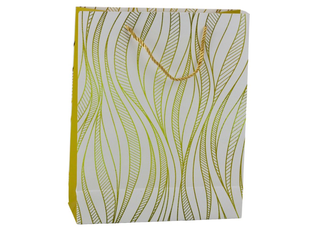 - Objevte eleganci a luxus s naší dárkovou taškou s vlnitým zlatým vzorem