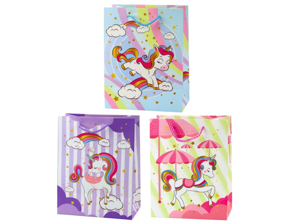 - Poznejte kouzlo darování s naší barevnou dárkovou taškou pro děti s jednorožcem!