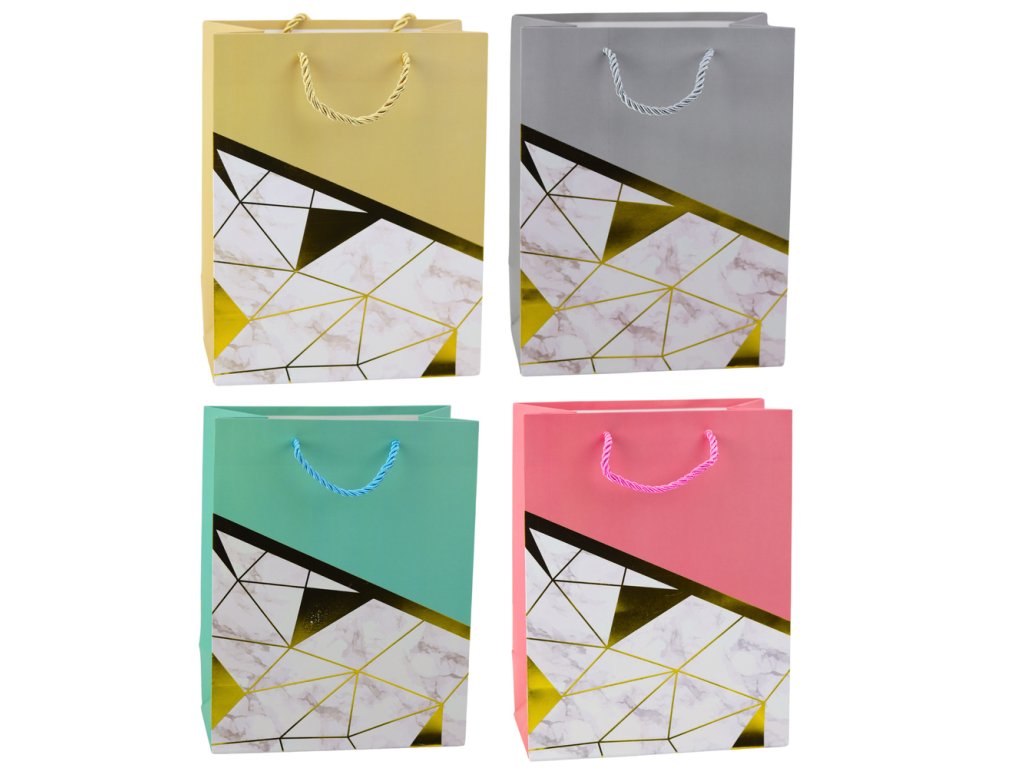 Dárková taška s efektem mramoru a geometrickými vzory – elegantní dárková taška s moderním designem je ideální volbou pro každou příležitost – od narozenin a výročí po svatby a společenská setkání.