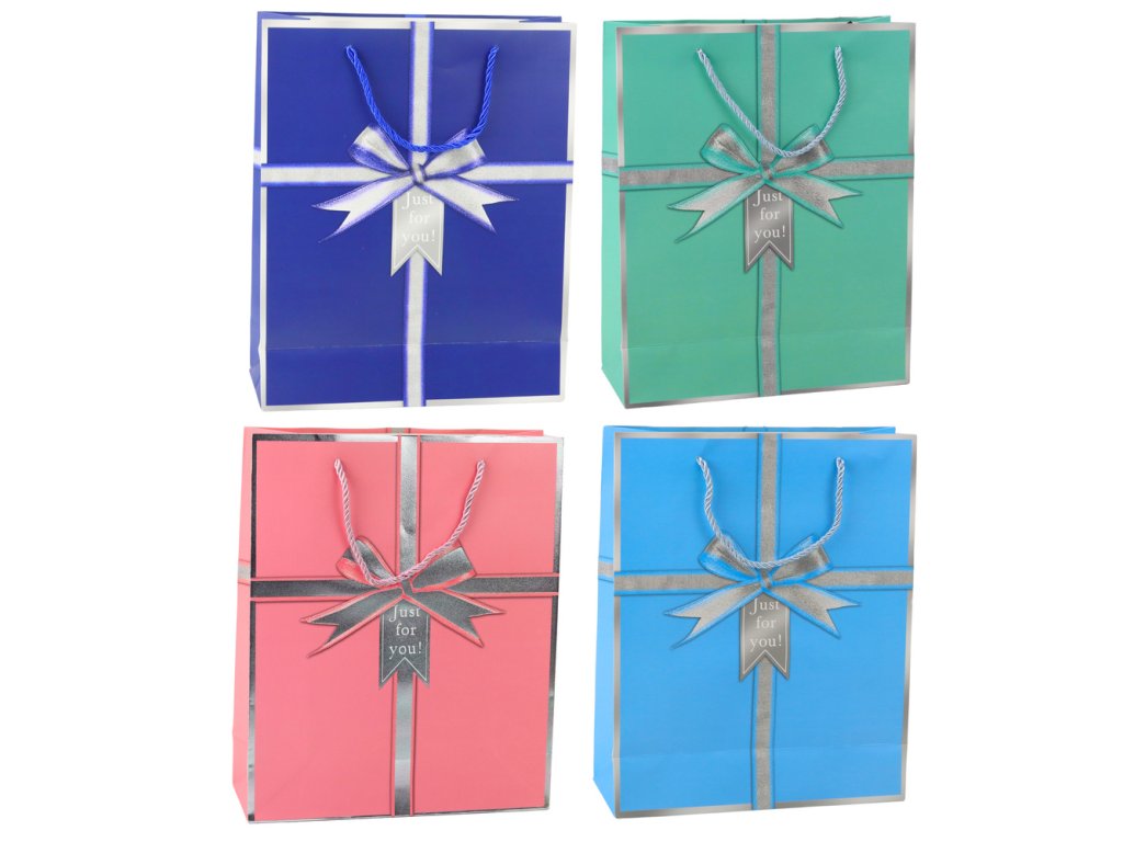 - Dárková papírová taška s mašlí Elegantní dárková taška s klasickým designem, která dodá každému dárku jedinečný charakter