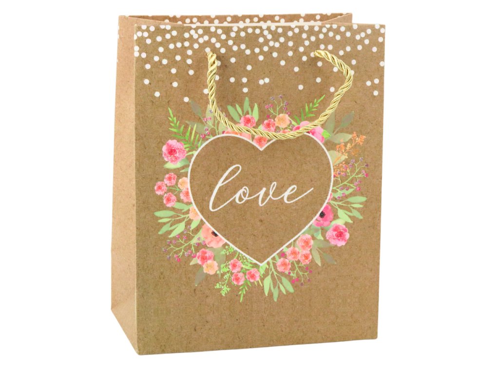 - Dárková taška s nápisem Love Květiny je výjimečný produkt s přírodním, rustikálním vzhledem, který je skvělou volbou pro různé příležitosti, jako jsou svatby, výročí