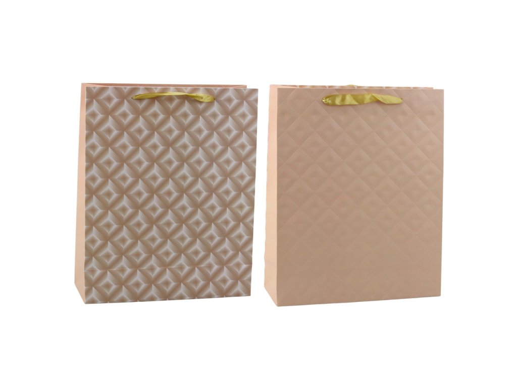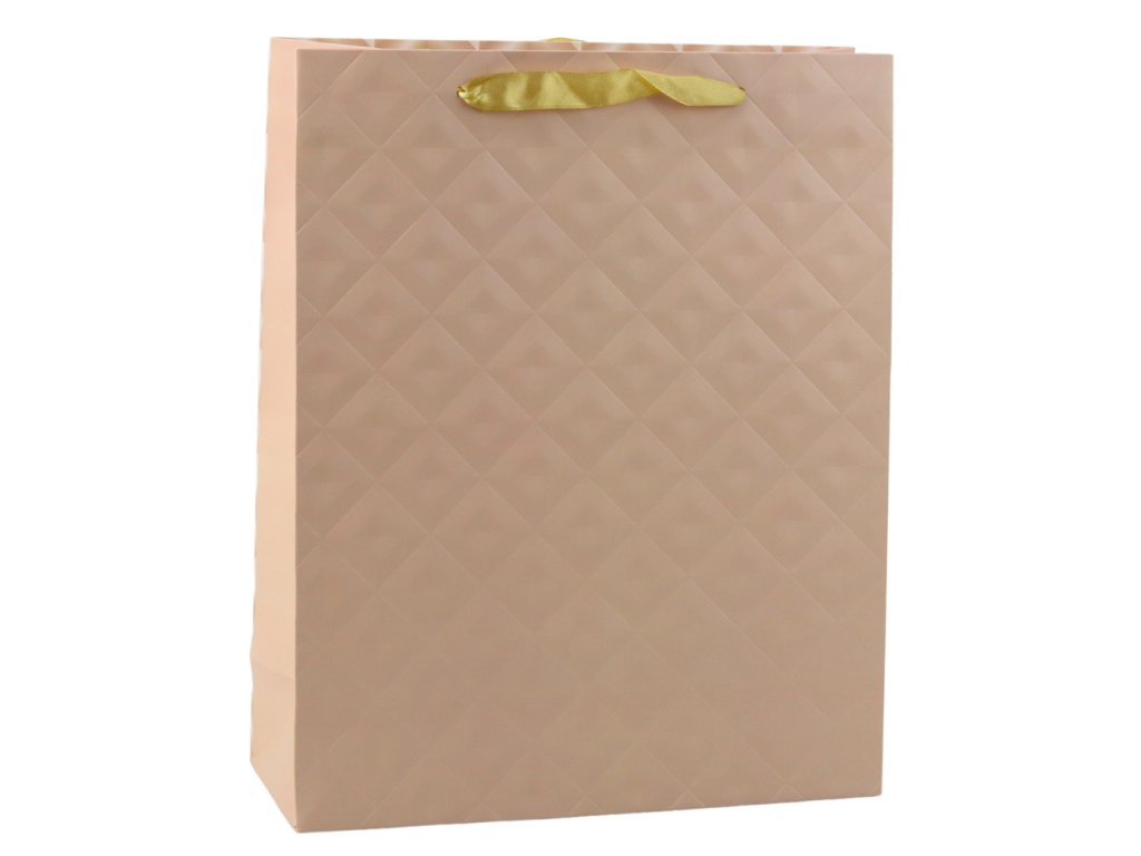 Dárková taška s ražbou světle béžová o rozměrech 32 x 26 x 10 cm je elegantní a univerzální volbou pro všechny příležitosti narozeniny, svátky, výročí nebo jiné oslavy