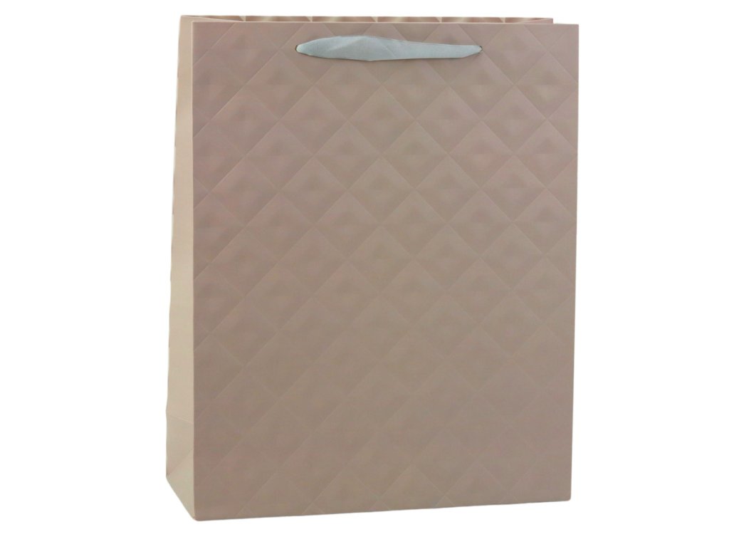 Dárková taška s reliéfem béžová 32 x 26 x 10 cm je elegantní volbou pro každou příležitost – narozeniny, svátky, výročí či jiné oslavy.