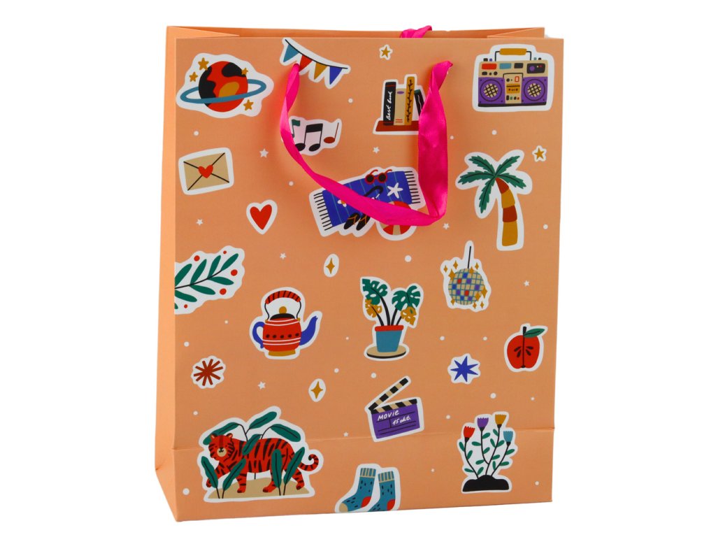 Prezentová taška s motivem samolepek je taška, která okouzlí pestrými barvami a moderním stylem.