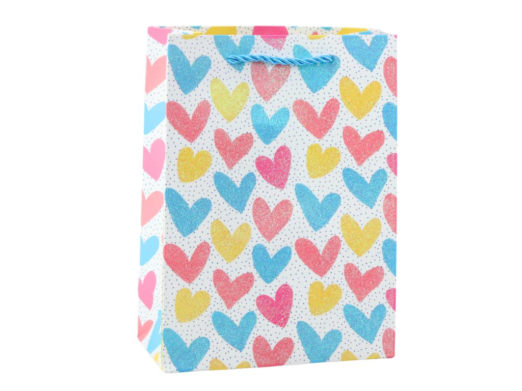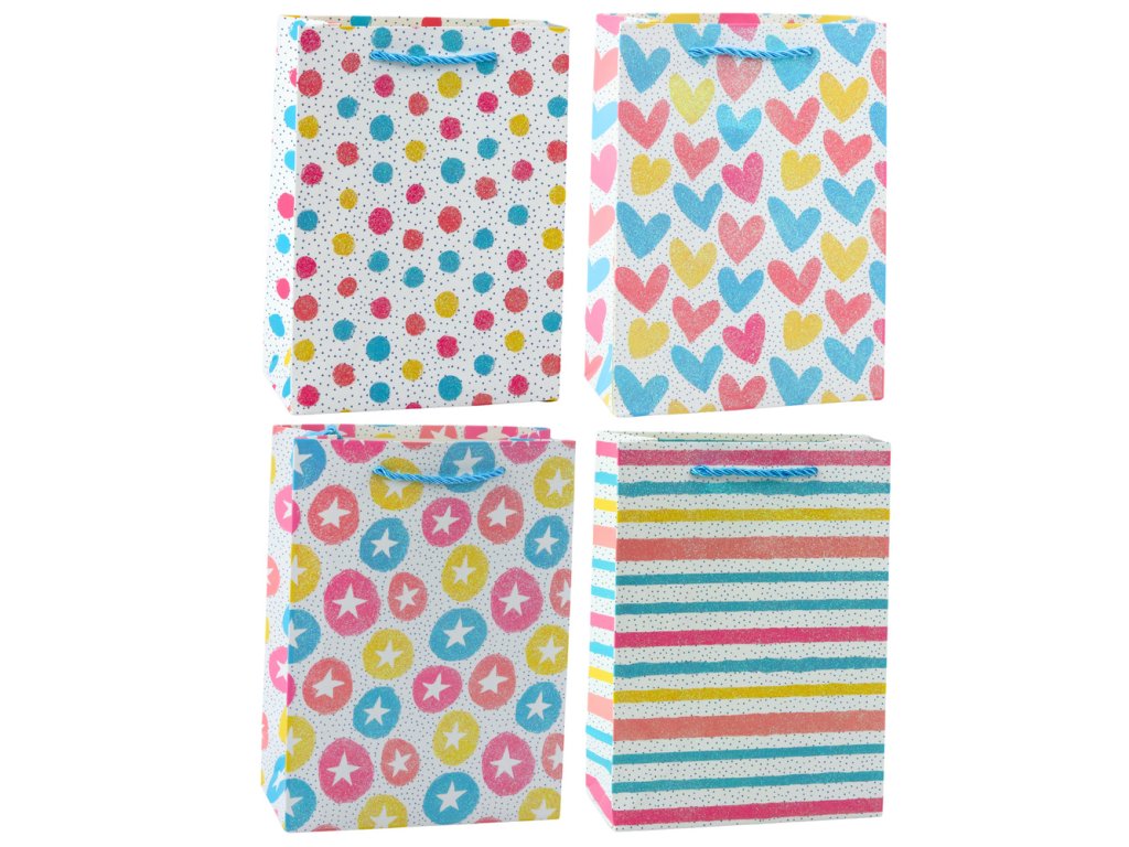 Dárková taška Srdce Hvězdičky Tečky Proužky Barevná 23 x 18 x 10,5 cm
