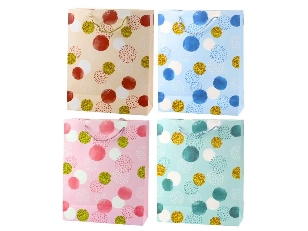 - Dárková taška s barevnými puntíky Výjimečná dárková taška s barevným vzorem puntíků je ideálním řešením pro zabalení dárků na různé příležitosti