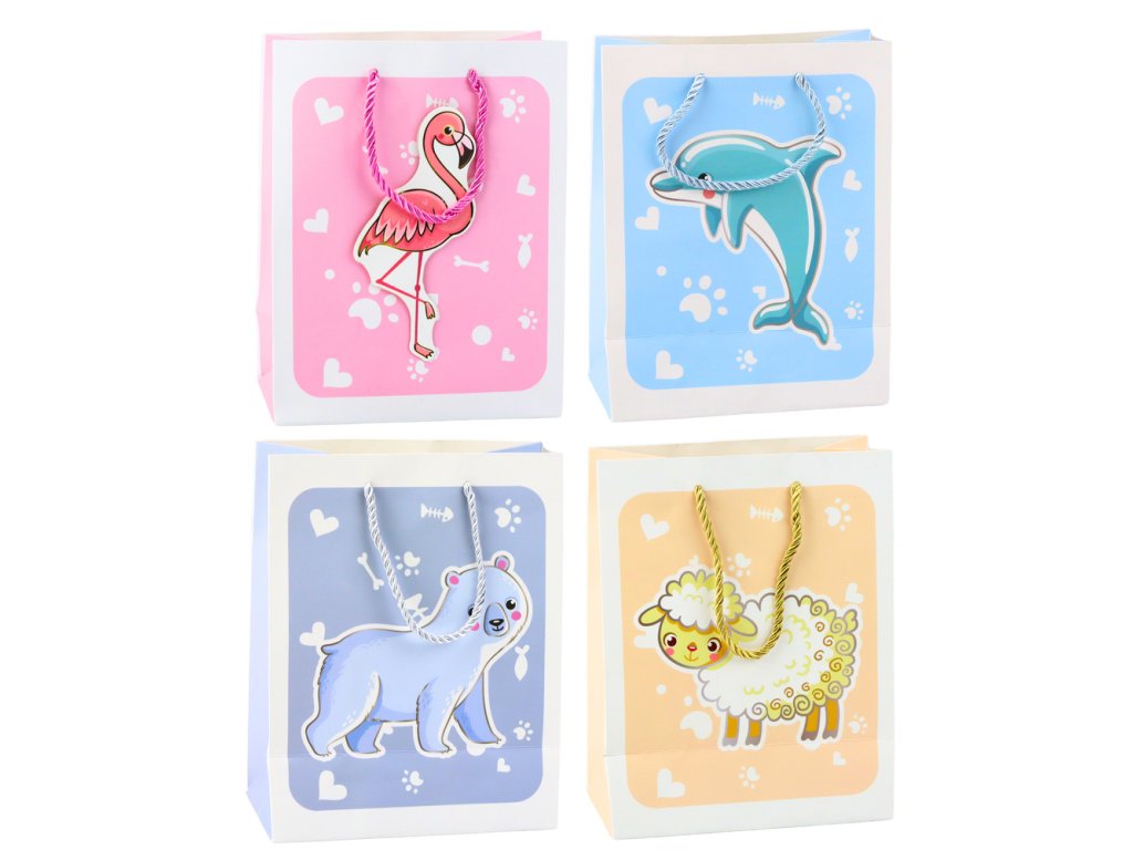 Barevná dárková taška se zvířaty 3D je ideálním řešením pro zabalení dárku pro dítě nebo milovníka roztomilých, pohádkových vzorů.