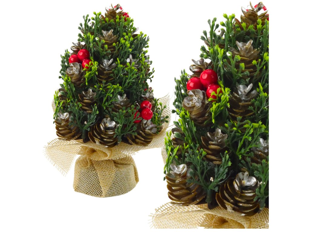 Dekorační Umělý Vánoční Stromeček se Šiškami a Jarabinou 17x10 cm