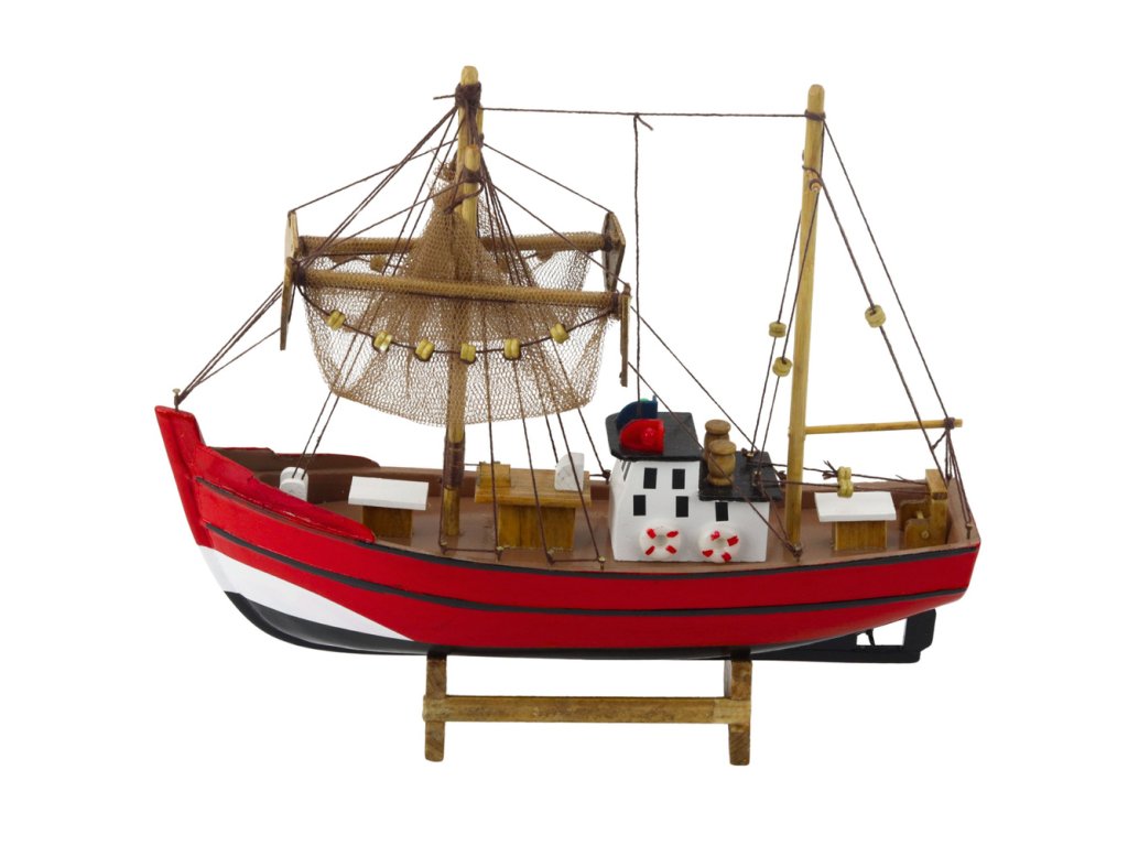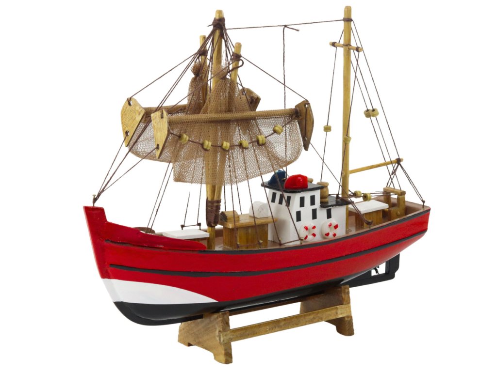 Dekorativní sběratelský model červené rybářské lodi 30x26cm