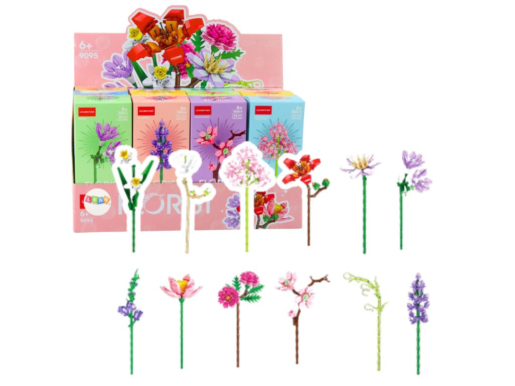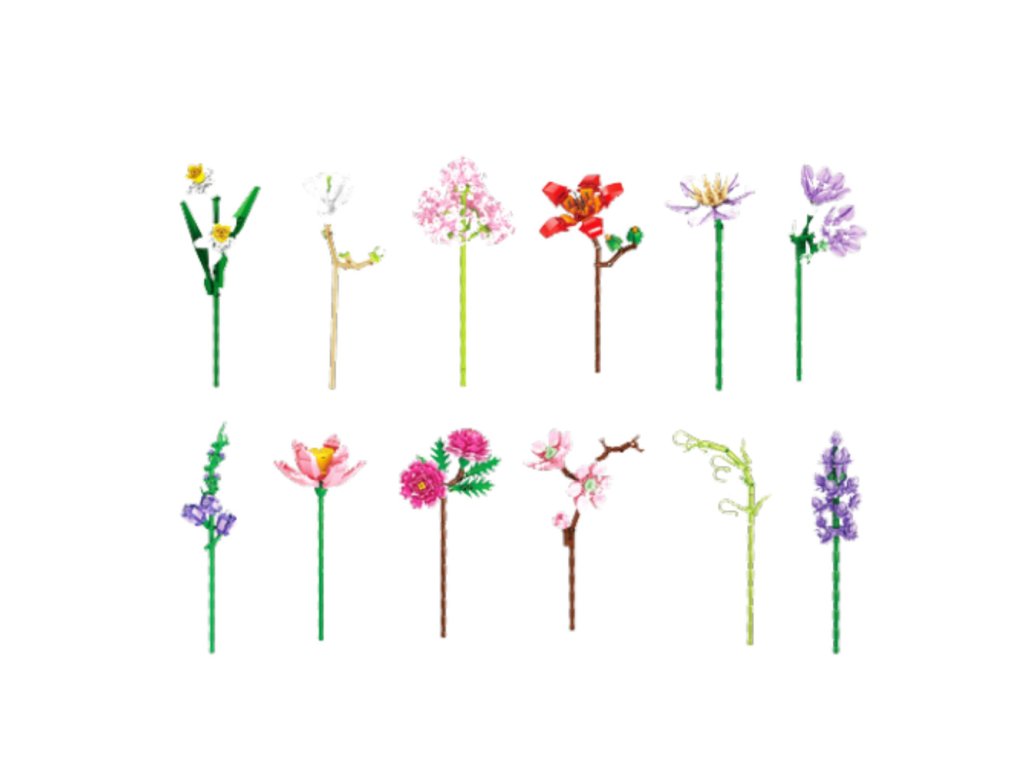 Díky realistickému barevnému provedení tyto stavebnice skvěle napodobují přírodní rostliny a stávají se tak výjimečným **dekorativním prvkem** v každém domově. Každé balení obsahuje **12 setů**, prodávaných jednotlivě a motivy jsou vybírané náhodně.
