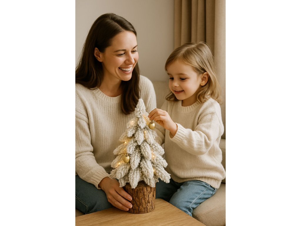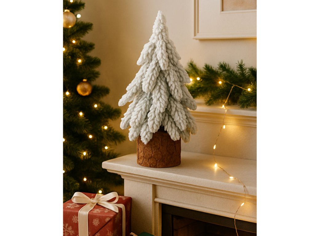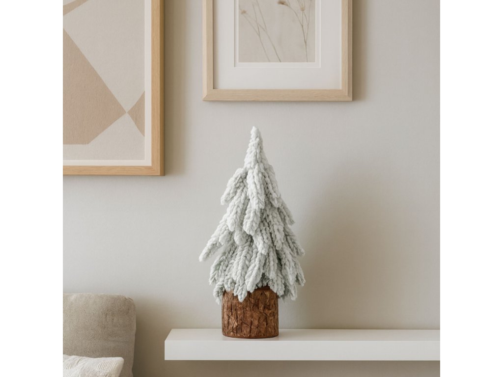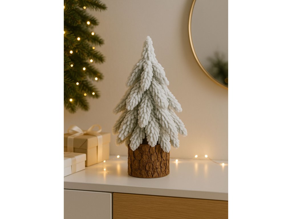 Hledáte elegantní a originální vánoční dekoraci, která přinese do vašeho interiéru příjemnou zimní atmosféru? Dekorativní umělý stromek na kmínku s efektem zasněžení je přesně tím, co hledáte! Tento důmyslně navržený doplněk o výšce cca 20 cm, vytvořený s důrazem na detaily, nabízí kombinaci rustikálního stylu a elegantního vzhledu. Jemné, nadýchané větvičky pokryté sněhovou imitací připomínají skutečné zasněžené stromy.