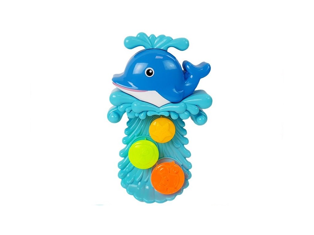 Velký delfín pod vlivem proudu vody vytváří nádherný vodopád, který může vaše dítě obdivovat Zároveň uvádí do pohybu 3 kolíčky s odraženými vzory vodního světa