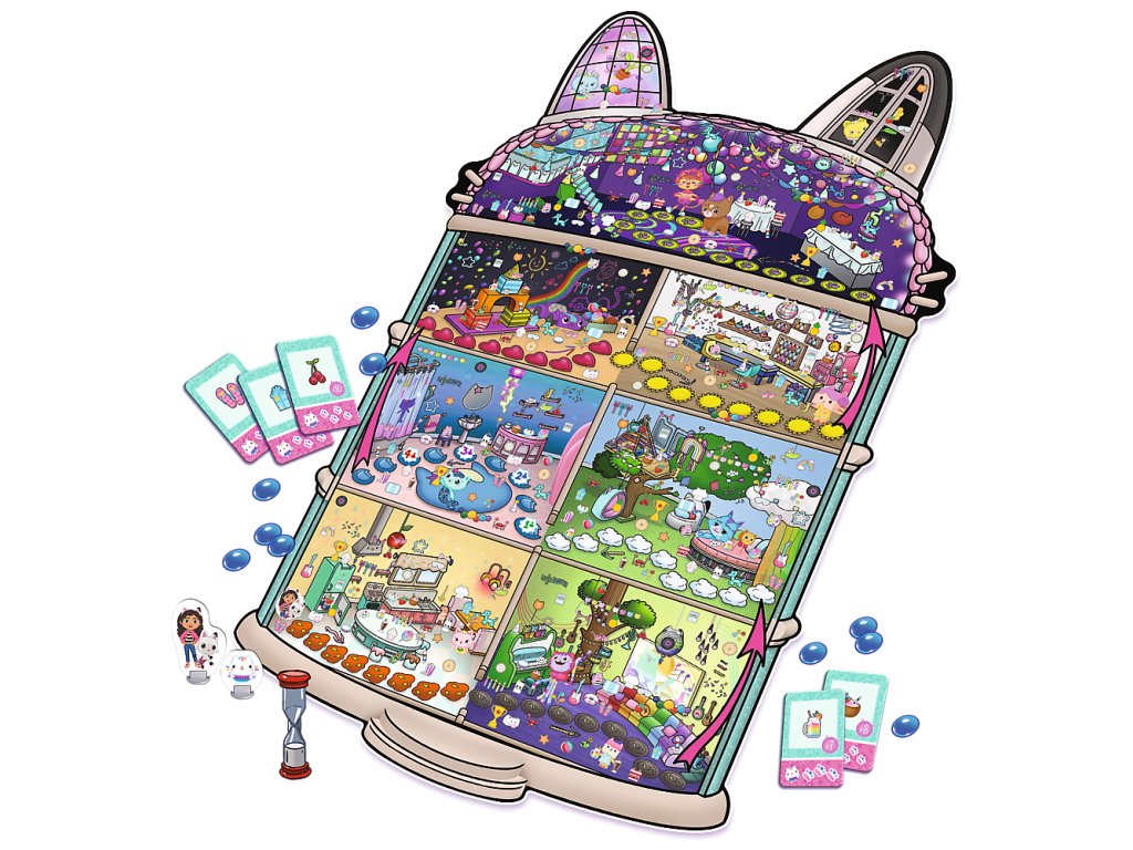 - Hledejte stopy na velké desce ve tvaru Kočičího Domečku Gabi a pomozte našim hrdinům zachránit Posypkovou Párty