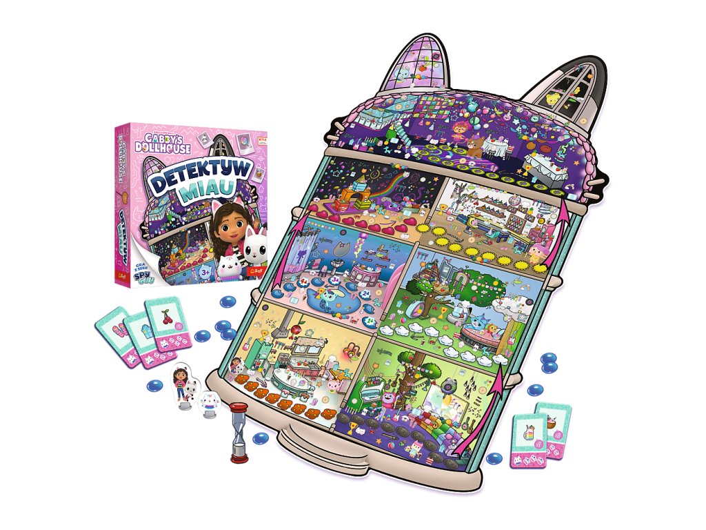 Detektiv Mňauk je zasazen do pohádkového světa Kočičího Domečku Gabi jako projekt kooperativní pozorovací hry ze série Spy Guy.
