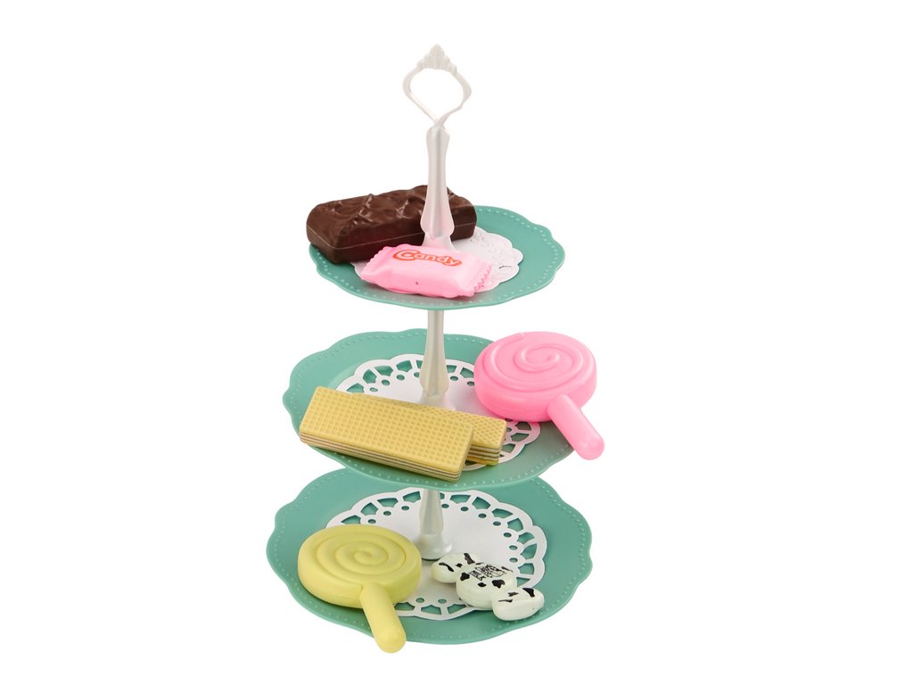 Každá z nich je vyrobena s důrazem na detaily, což jim dodává realistický vzhled a povzbuzuje ke kreativní hře Hlavním prvkem sady je nádherná, tyrkysová stojan na sladkosti s třemi patry, který poskytuje dostatek prostoru pro vystavení různorodých sladkostí