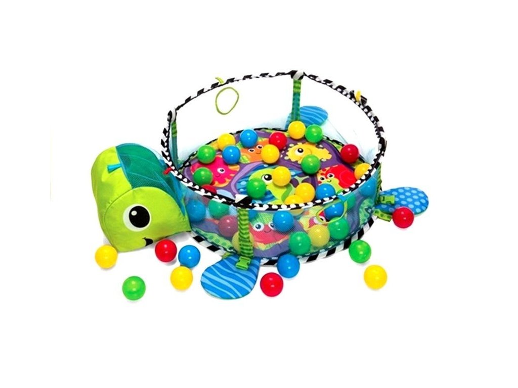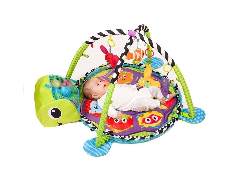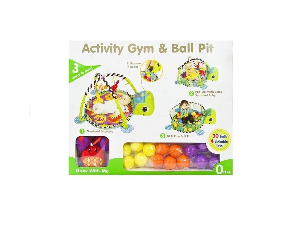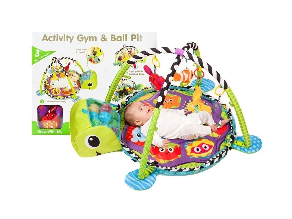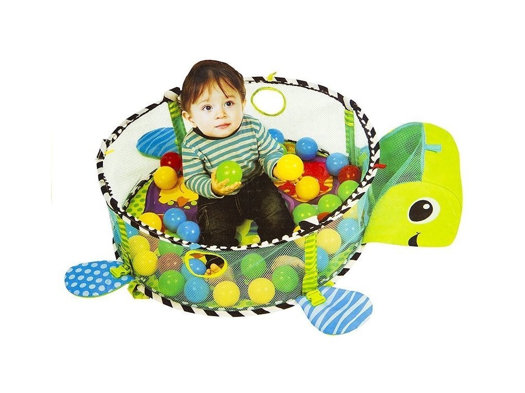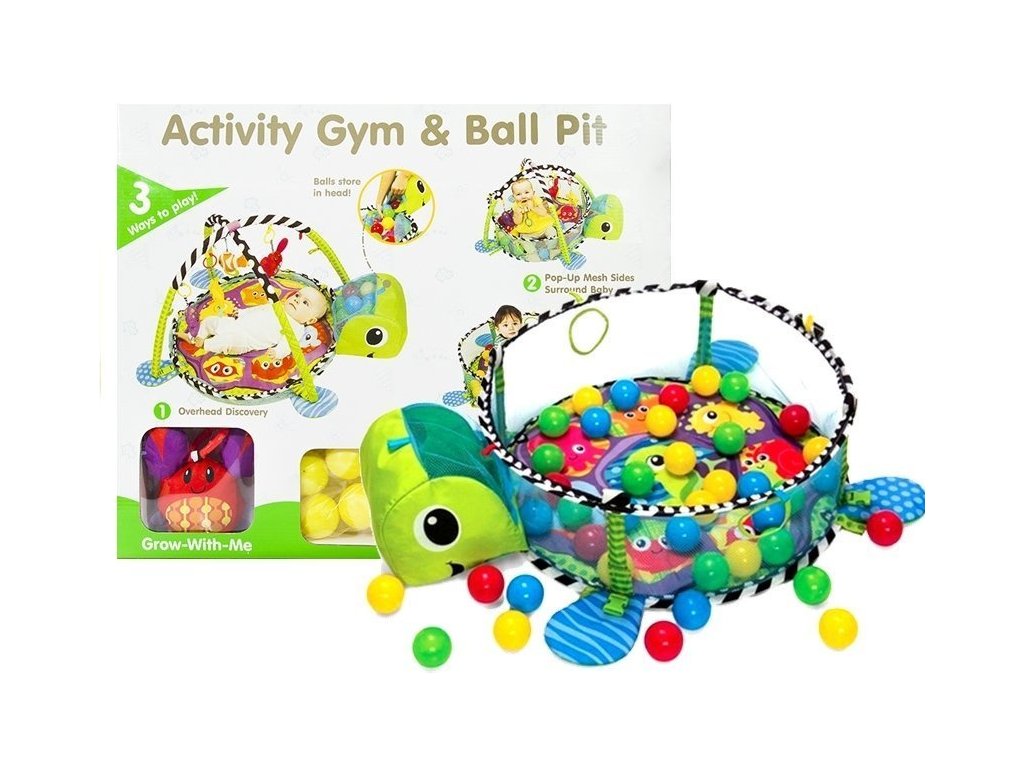 - Vzdělávací podložka pro batolata Želva 3v1 Bazén Míčky Měkká podložka vyrobená z příjemného materiálu na dotek má atraktivní živé barvy, které upoutají pozornost i toho nejneklidnějšího miminka