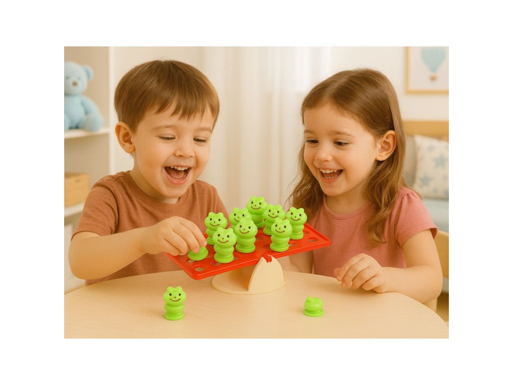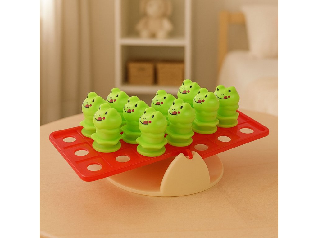 Objevte radost a zábavu s Balancující Žábky – vzdělávací hrou pro děti, která spojuje učení a hraní v jednu skvělou aktivitu! Tato hra zručnosti nabízí ideální způsob, jak u dětí rozvinout logické myšlení a schopnosti manuální dovednosti. Stačí jednoduše umístit žabky na obou stranách balancující základny a zachovat přitom rovnováhu.
