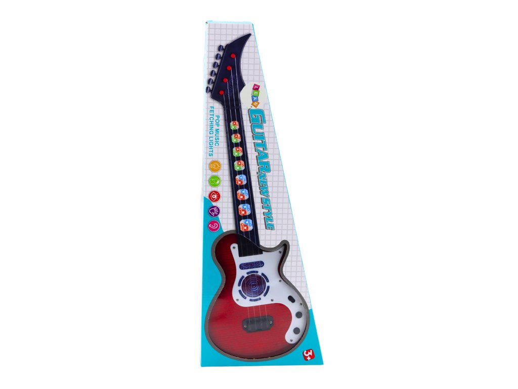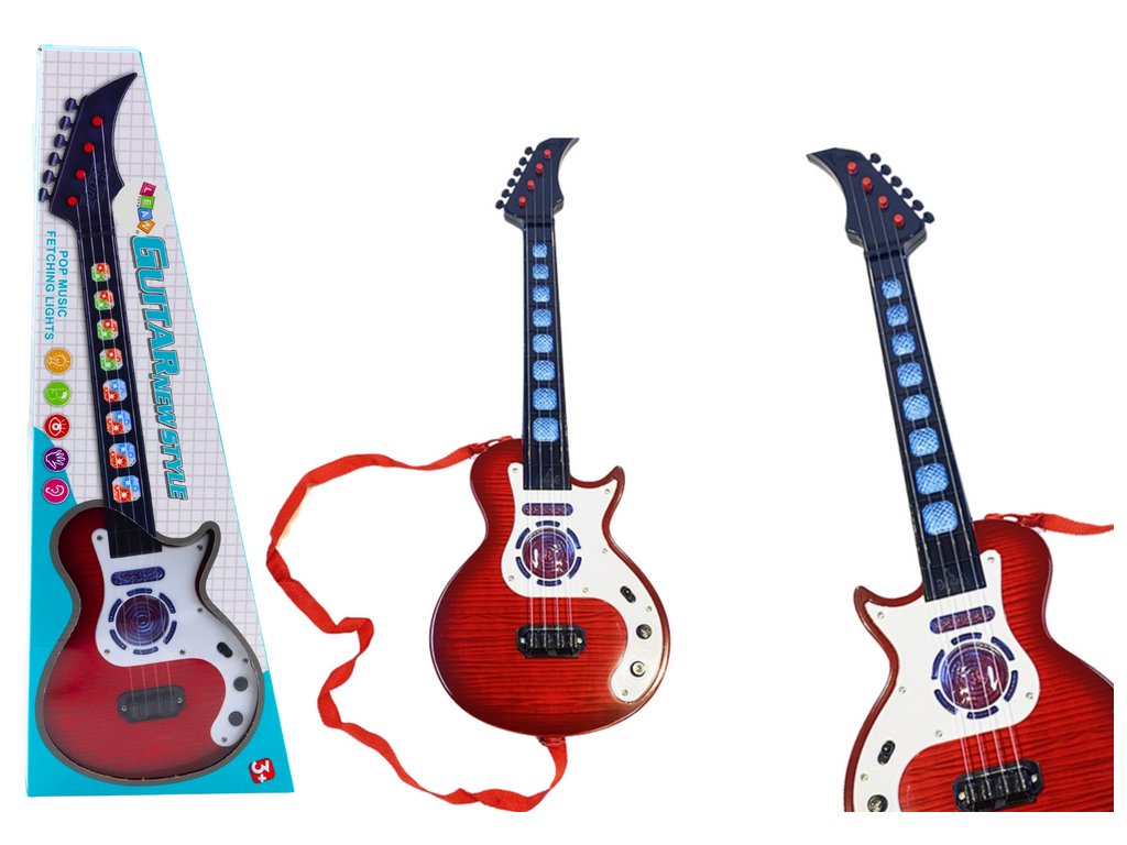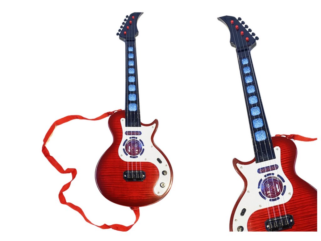 - Dětská Elektrická Kytara Světla Melodie Červená přináší elektrickou kytaru pro děti ve výrazné červené barvě, ideální pro uvedení nejmenších do světa hudby